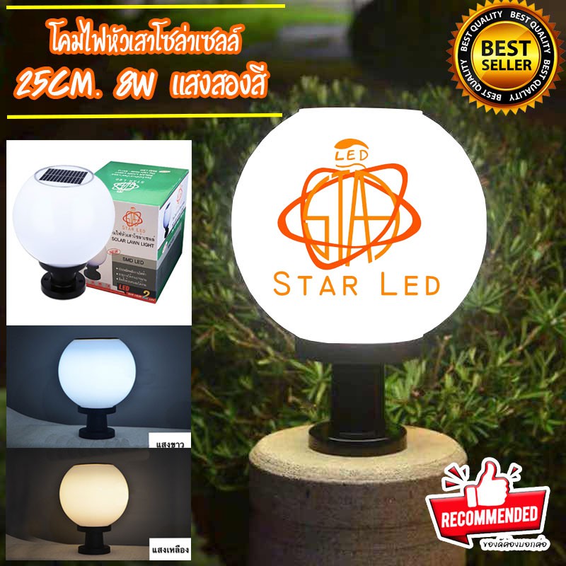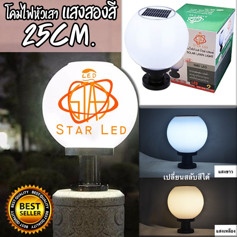 ไฟโซล่าเซลล์ JD-X75แสง2สี 25CM. โคมหัวเสา 8W เปิดปิดเองอัตโนมัติ ไม่เสียค่าไฟ แสงขาวกับแสงเหลือง