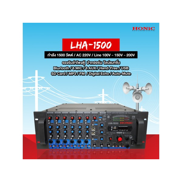 HONIC LHA-1500 เพาเวอร์มิกเซอร์ 1800W ที่ 4ohm มี Line 200V เครื่องขยายเสียงตามสาย หอกระจายข่าว Power Mixer LHA1500