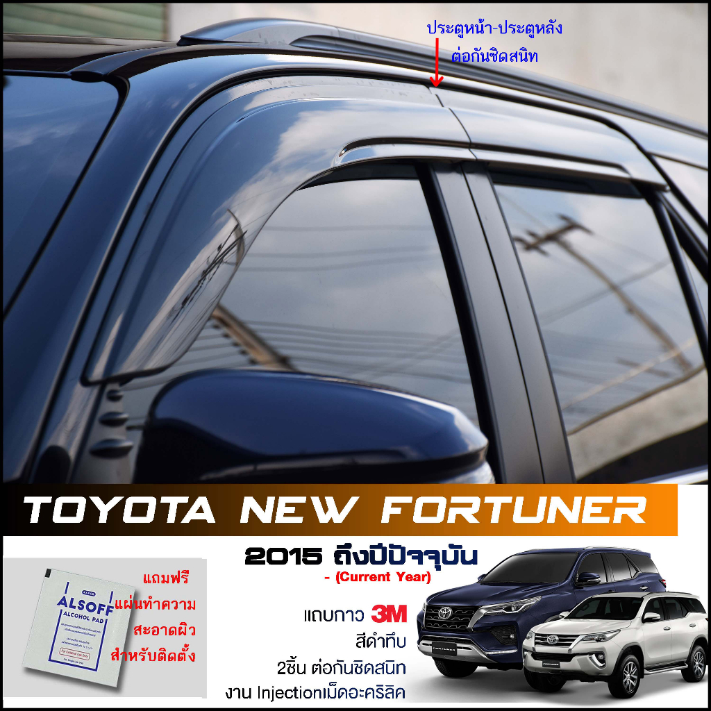 กันสาด Toyota New Fortuner 2015-2020 สีดำทึบ 4ชิ้น ประตูหน้า-ประตูหลังติดกัน แบรนด์ LWN Life