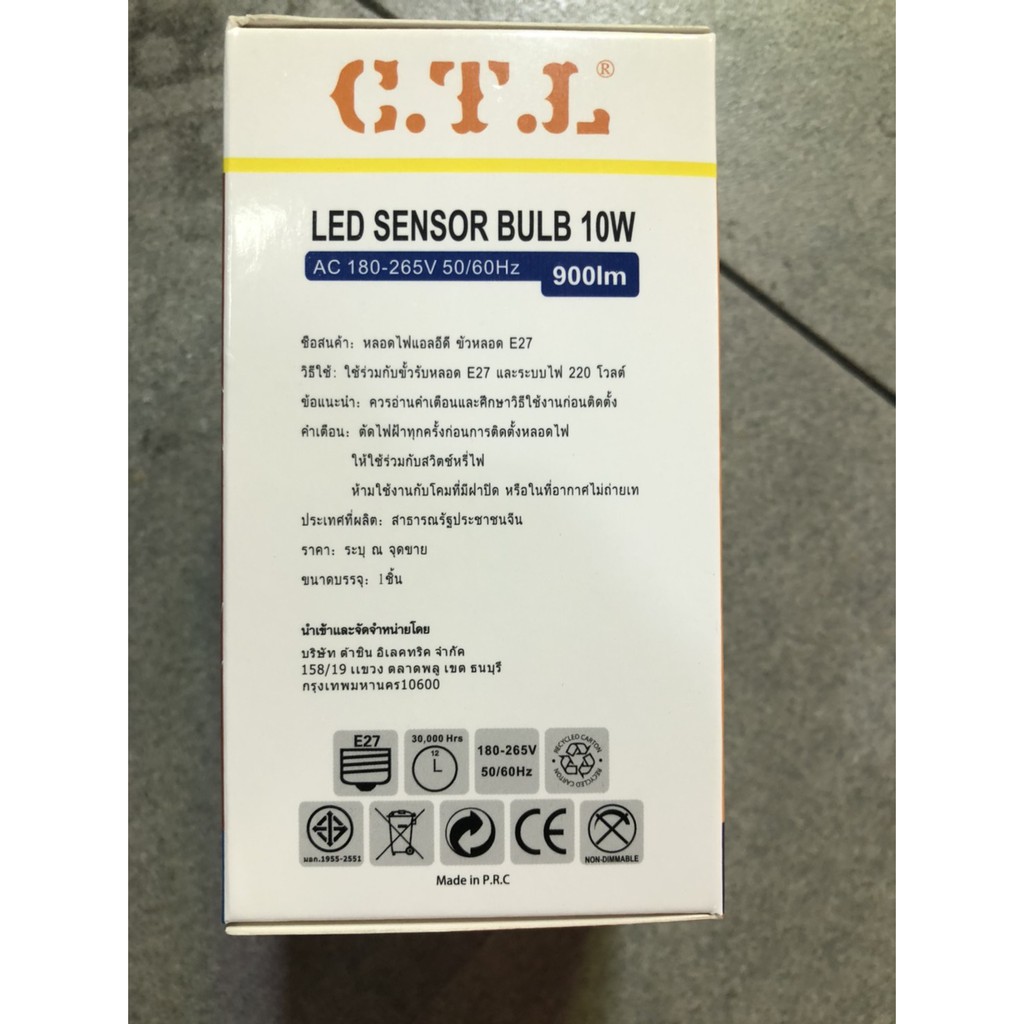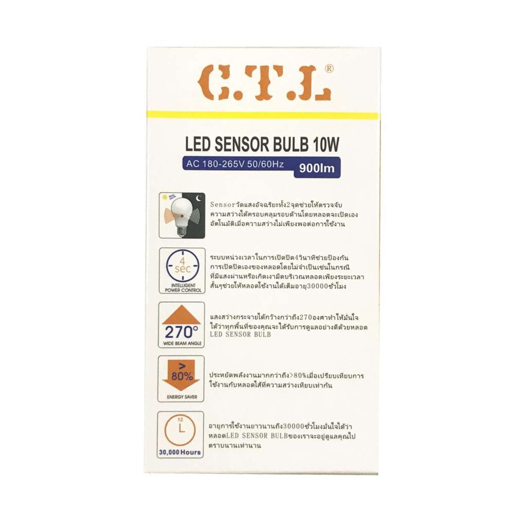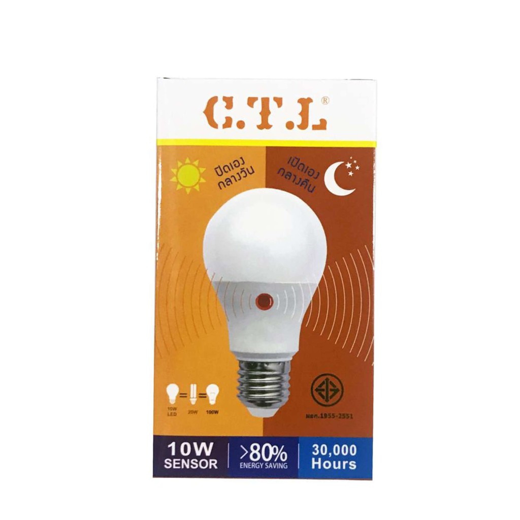 CTL หลอดไฟ LED หลอดไฟเซ็นเซอร์แสงอาทิตย์ เปิดเองกลางคืน ปิดเองกลางวัน Light Sensor 10w แสงขาว แสงวอร์ม