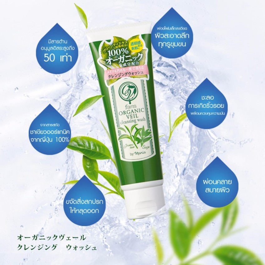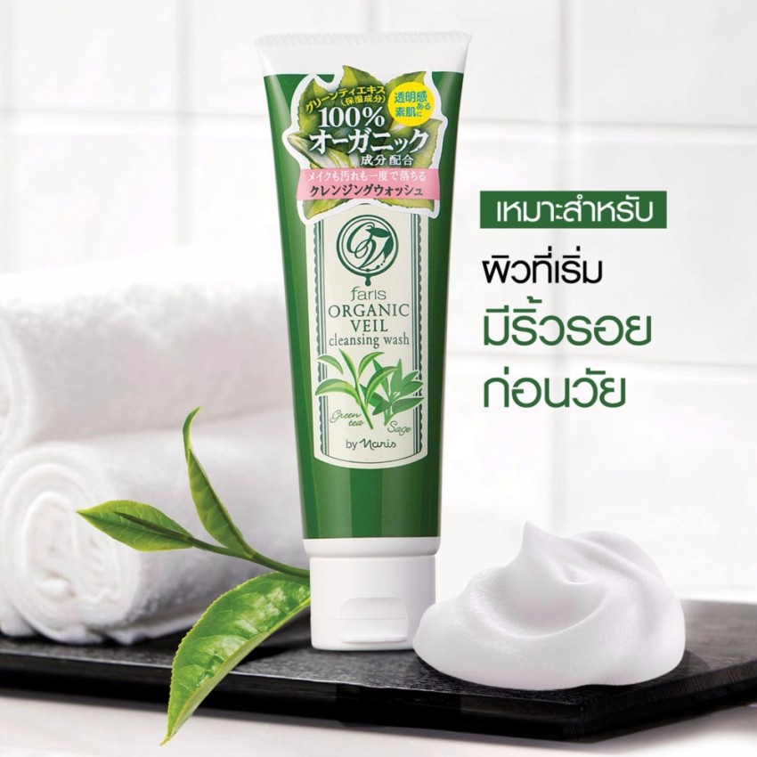 Faris by Naris Organic Veil Cleansing Wash 120 กรัม โฟมล้างหน้าชาเขียว
