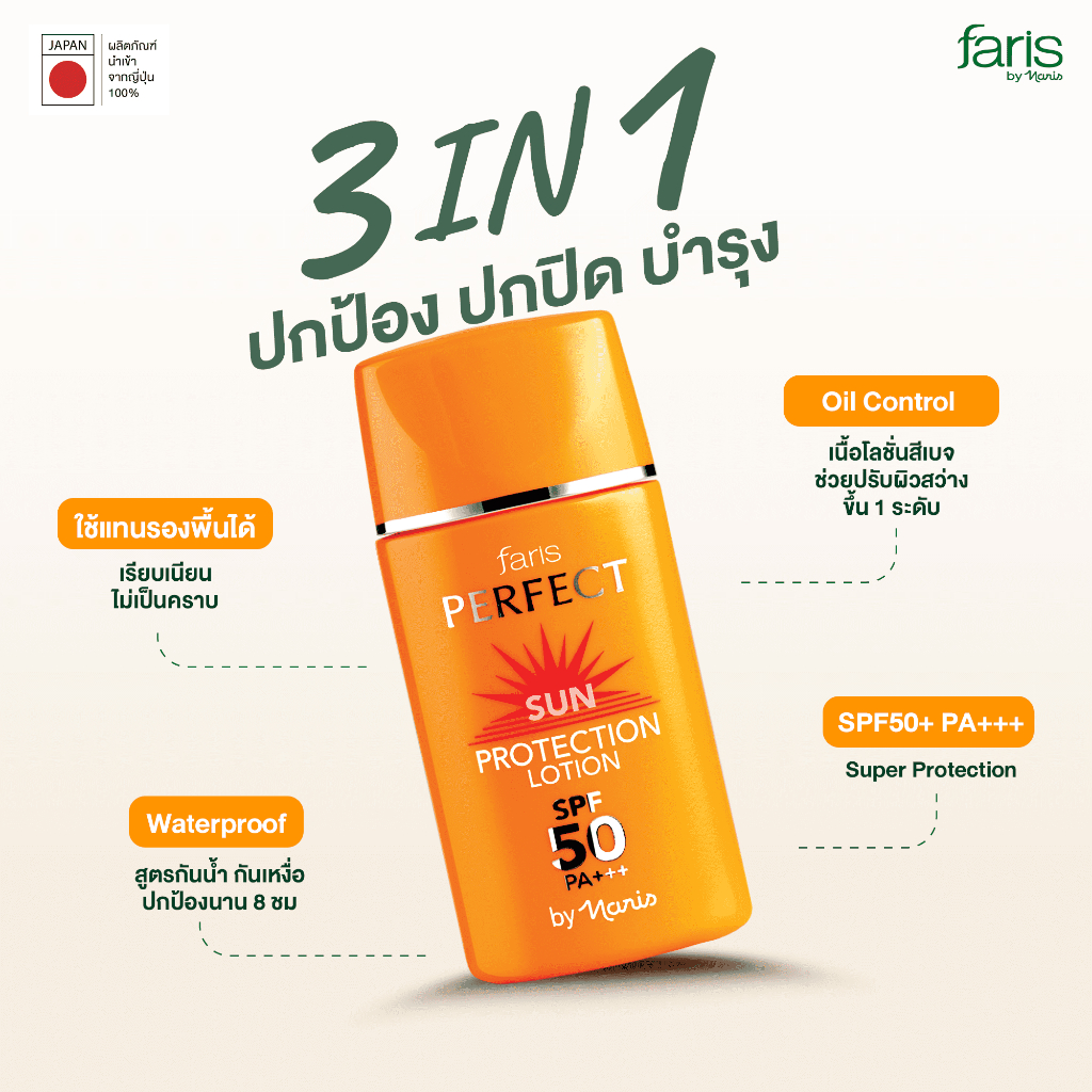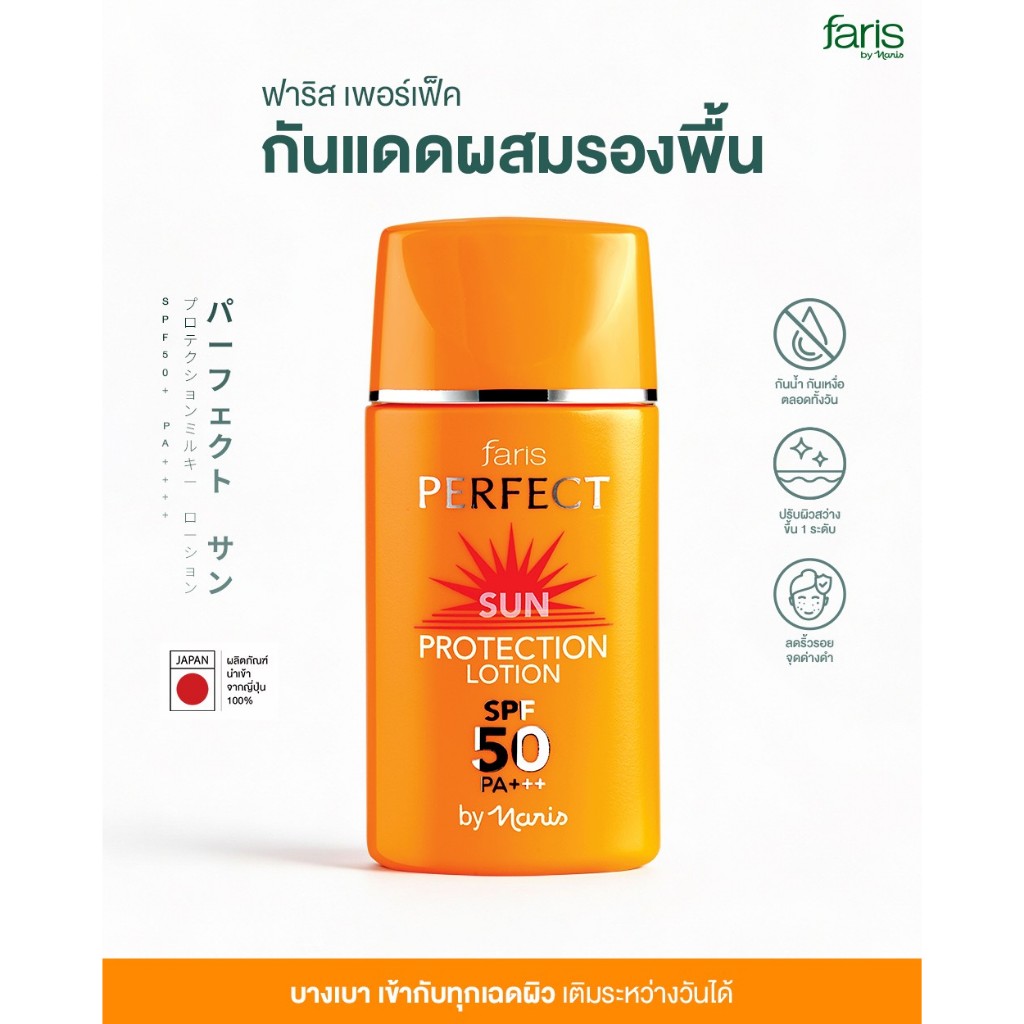 Faris By Naris Perfect Sun Protection Lotion SPF50 PA+++ กันแดดสูตรผสมรองพื้น 30 ml