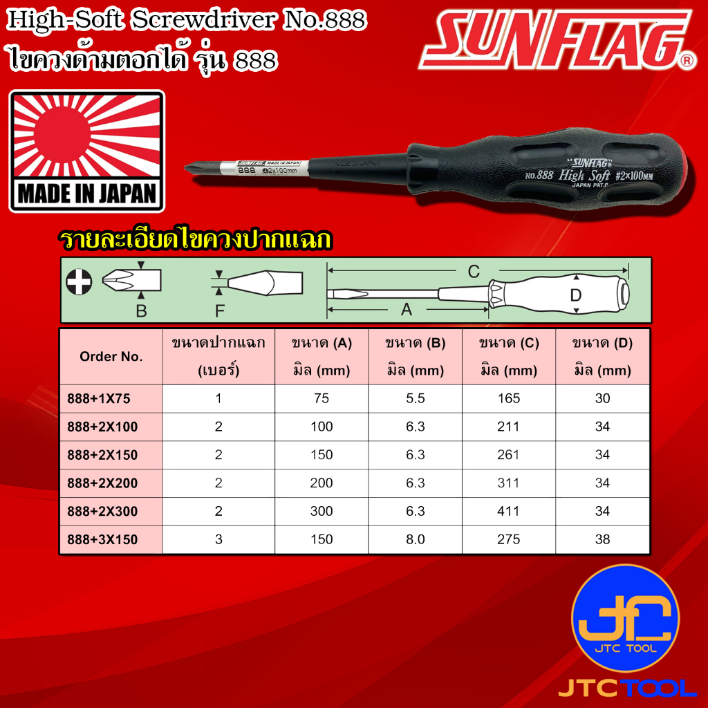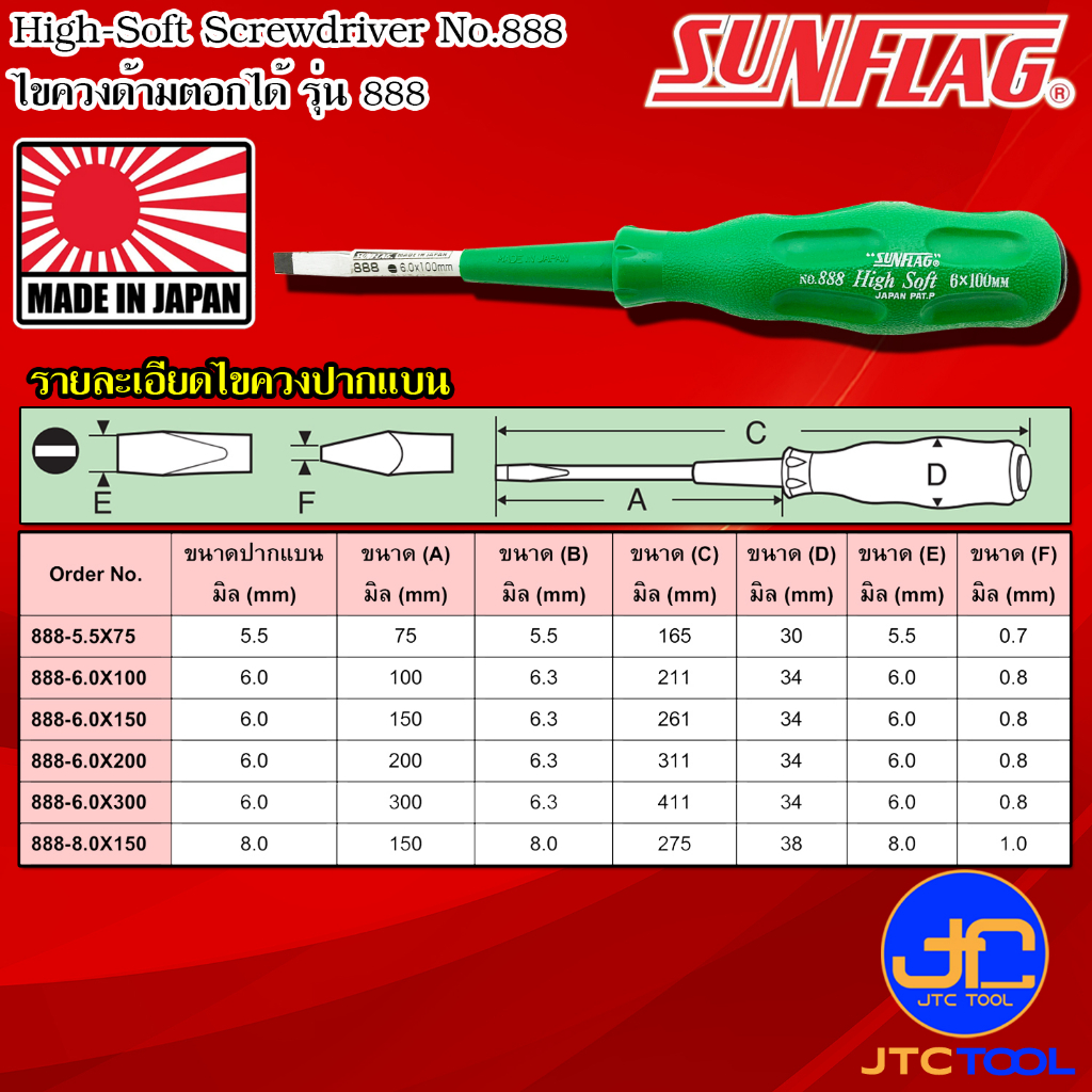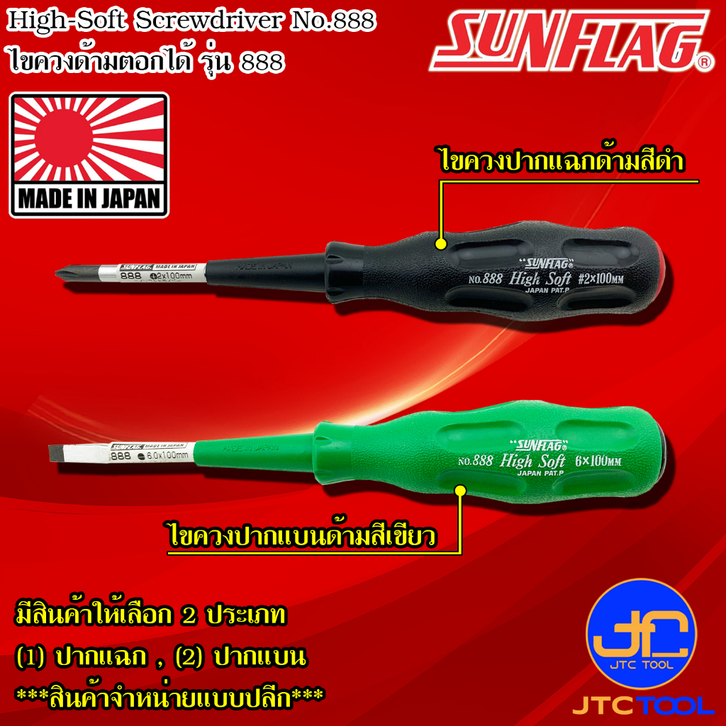 Sunflag ไขควงด้ามยางมีแม่เหล็กด้ามตอกได้ รุ่น 888 - High Soft Drive , Tang-Thru. Type No.888