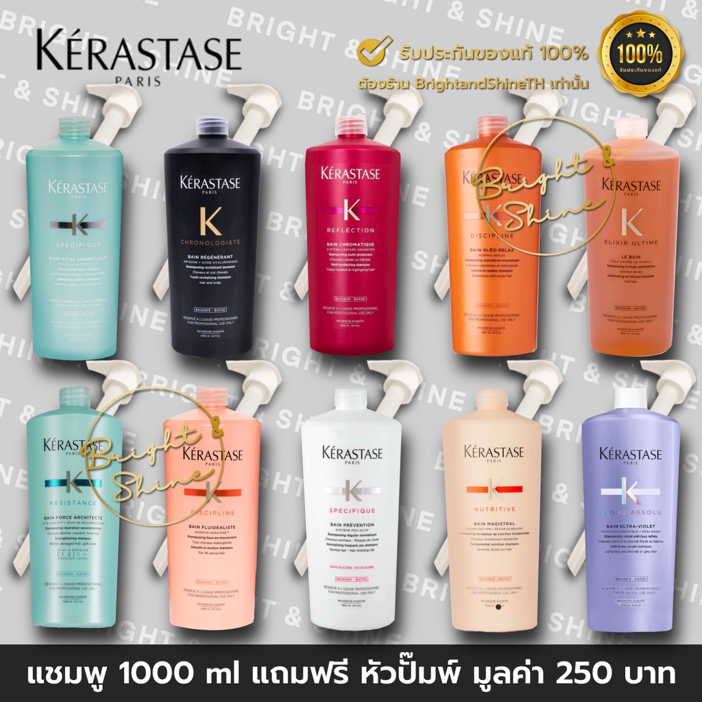 แท้100% Kerastase Shampoo 1000ml เคเรสตาส แชมพู ขวดใหญ่ ไซส์ลิตร แถมหัวปั๊ม