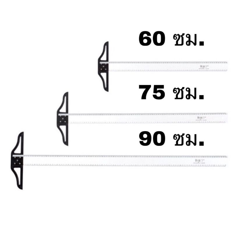 Project ไม้ที ไม้ทีพลาสติก PVC 🟢แถมฟรีดินสอ 2B:1แท่ง🟢 ไม้บรรทัด มาตราวัด คมชัด มี 3 ขนาด 90 75 60 ซม.
