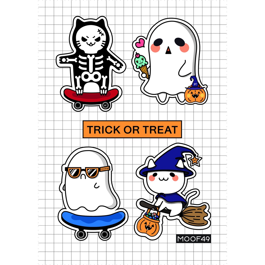 MOOF49 Trick or Treat Sticker (Halloween) - สติกเกอร์ ขนาด A4 Waterproof กันน้ำ ไม่ทิ้งคราบกาว *ลูกค้าใหม่ 1.-