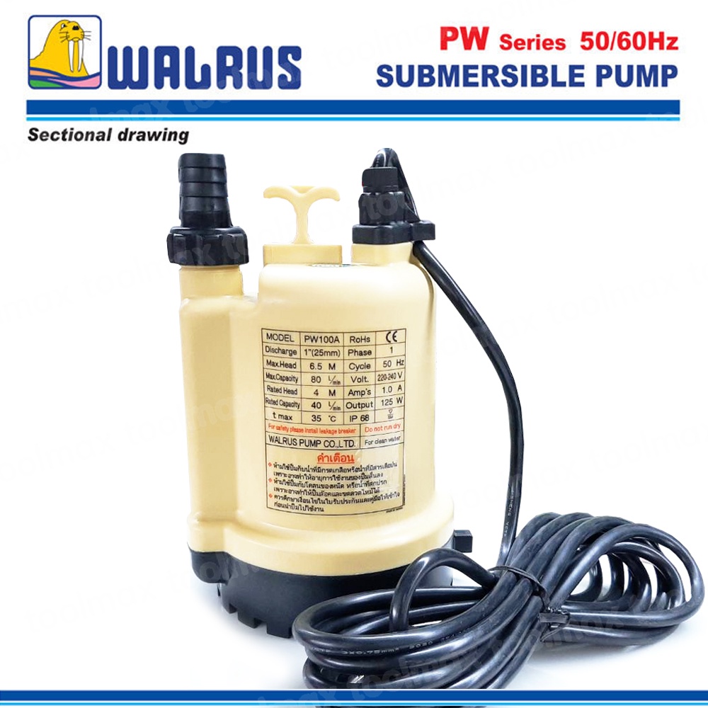 WALRUS ปั๊มแช่ ปั๊มจุ่ม ไดโว่ ขนาด 1 นิ้ว (125 วัตต์) รุ่น PW100A