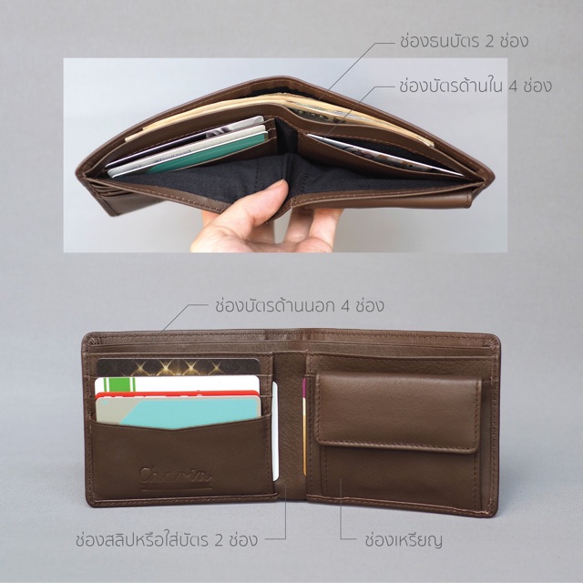 ใบพับใช้ได้ทั้ง ช/ญ นุ่มมาก รุ่น Paul มีช่องใส่เหรียญ กระเป๋าสตางค์หนังวัวแท้
