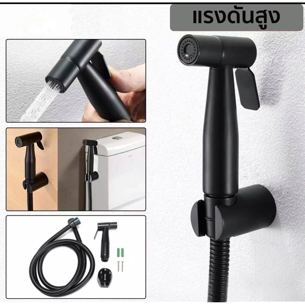 [ ลดอีก 20 บาท ] ที่ฉีดก้น ชุดชำระ SuperBlack สแตนเลส304 สายดำยาว 120 cm. ทนทานไม่เป็นสนิม!!