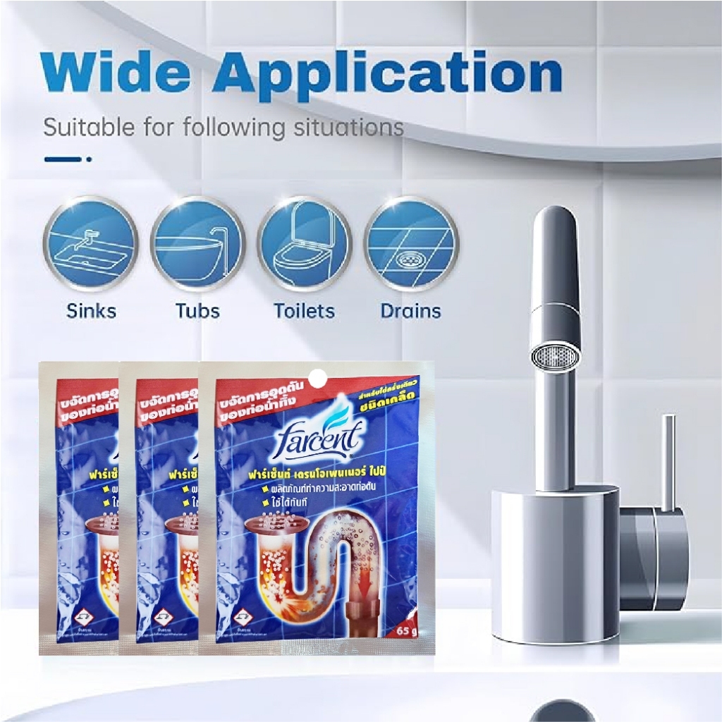 Farcent Drain Opener Pipe 65g - Farcent ขจัดท่อตัน ชนิดเกล็ด 65กรัม (JD5191) หายตันแน่นอน!!