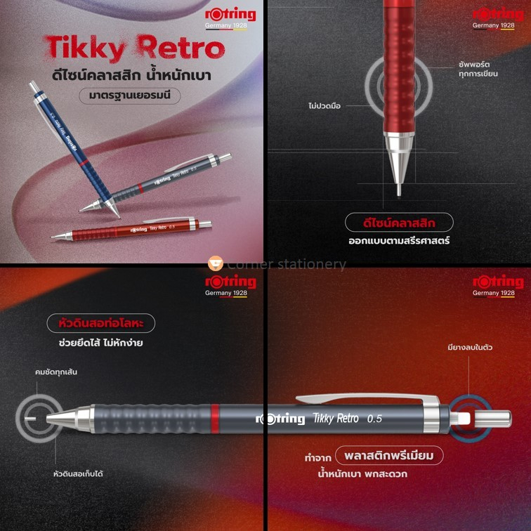 ดินสอกดรอตติ้ง Rotring Tikky ขนาด 0.5 มม.ของแท้ 100% ดินสอรอตตริ้ง สีพาสเทล เรโทร mechanical pencil