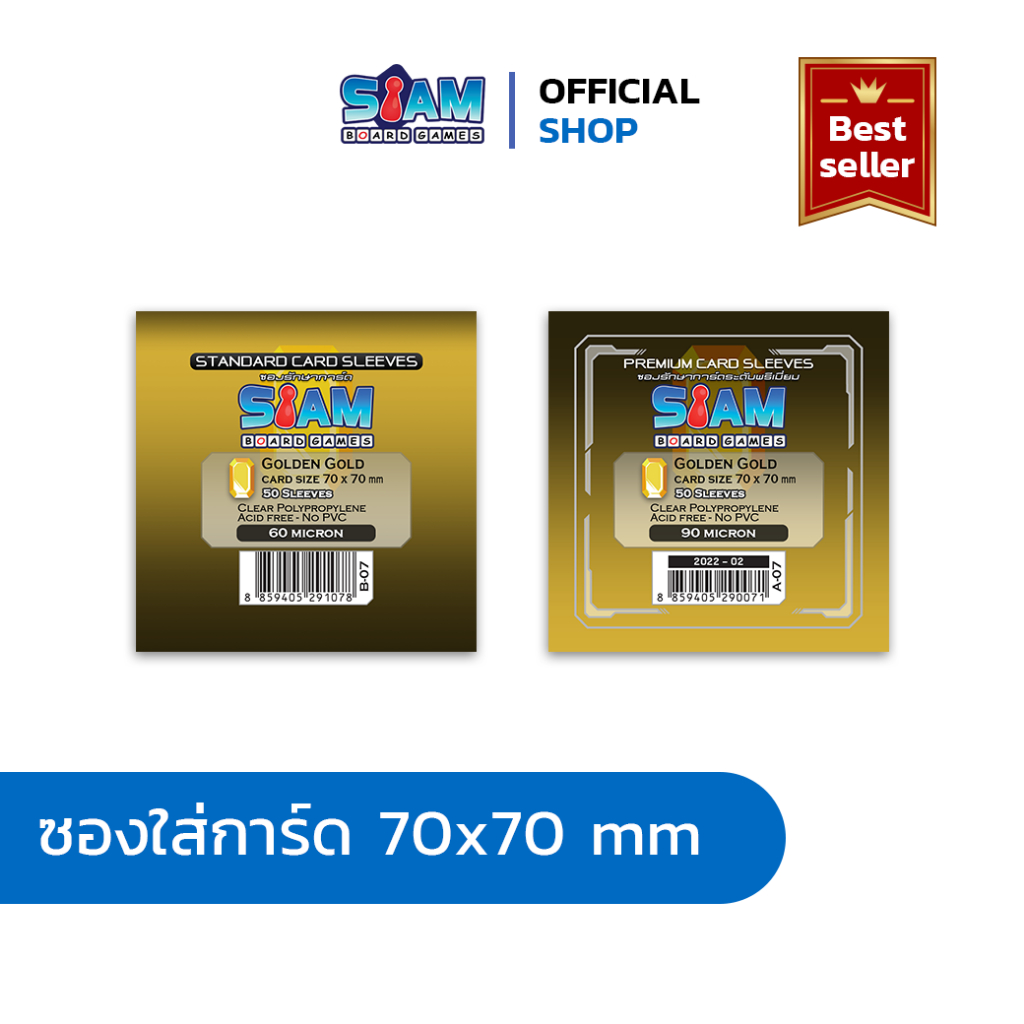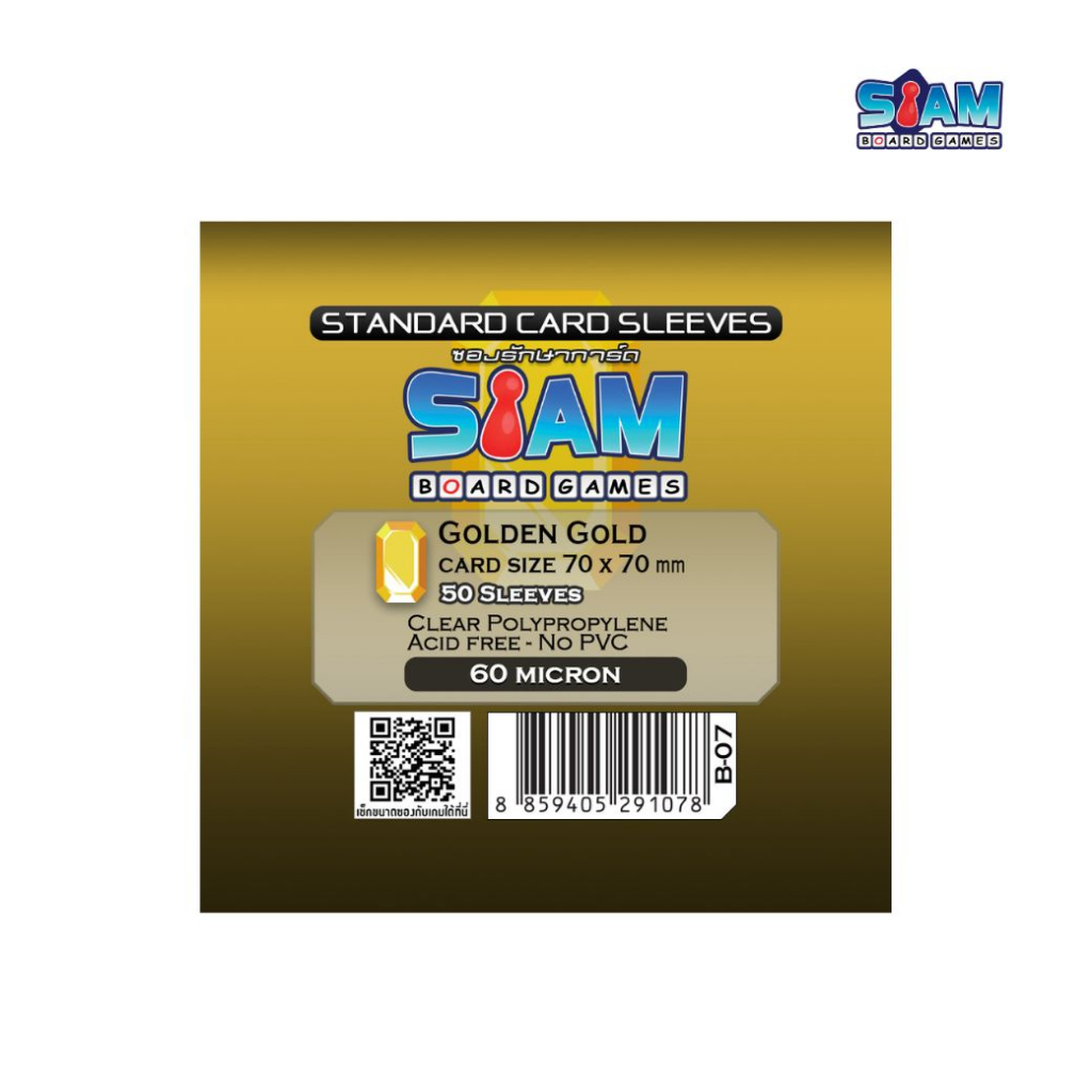 ซองใส่การ์ด 70 x 70 Golden Gold by Siam Board Games ซองเกาหลี SBG Sleeve ซองใส ซองสยาม board game บอร์ดเกม การ์ดเกม