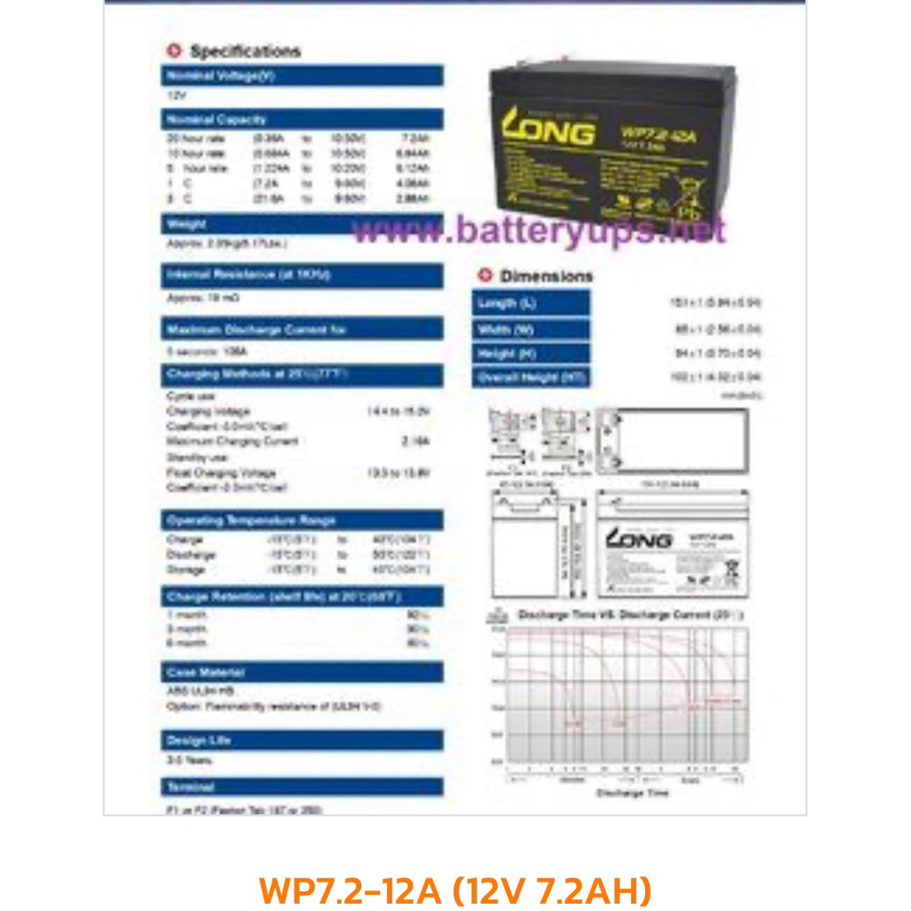 LONG 12V 7.2A แบตเตอรี่ (WP7.2-12)ใช้กับไฟฉุกเฉิน,UPS