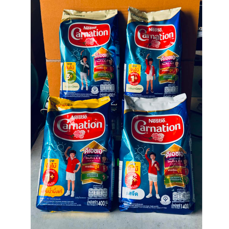 คาร์เนชัน 1+สูตร3 และ 3+ สมาร์ทโก ผลิตภัณฑ์นมผง สูตร 4 รสจืด/น้ำผึ้ง/วานิลา ขนาด 1400ก.