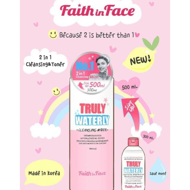 Faith in Face Truly Waterly Cleansing Water 500ml. คลีนซิ่งขวดสีชมพู