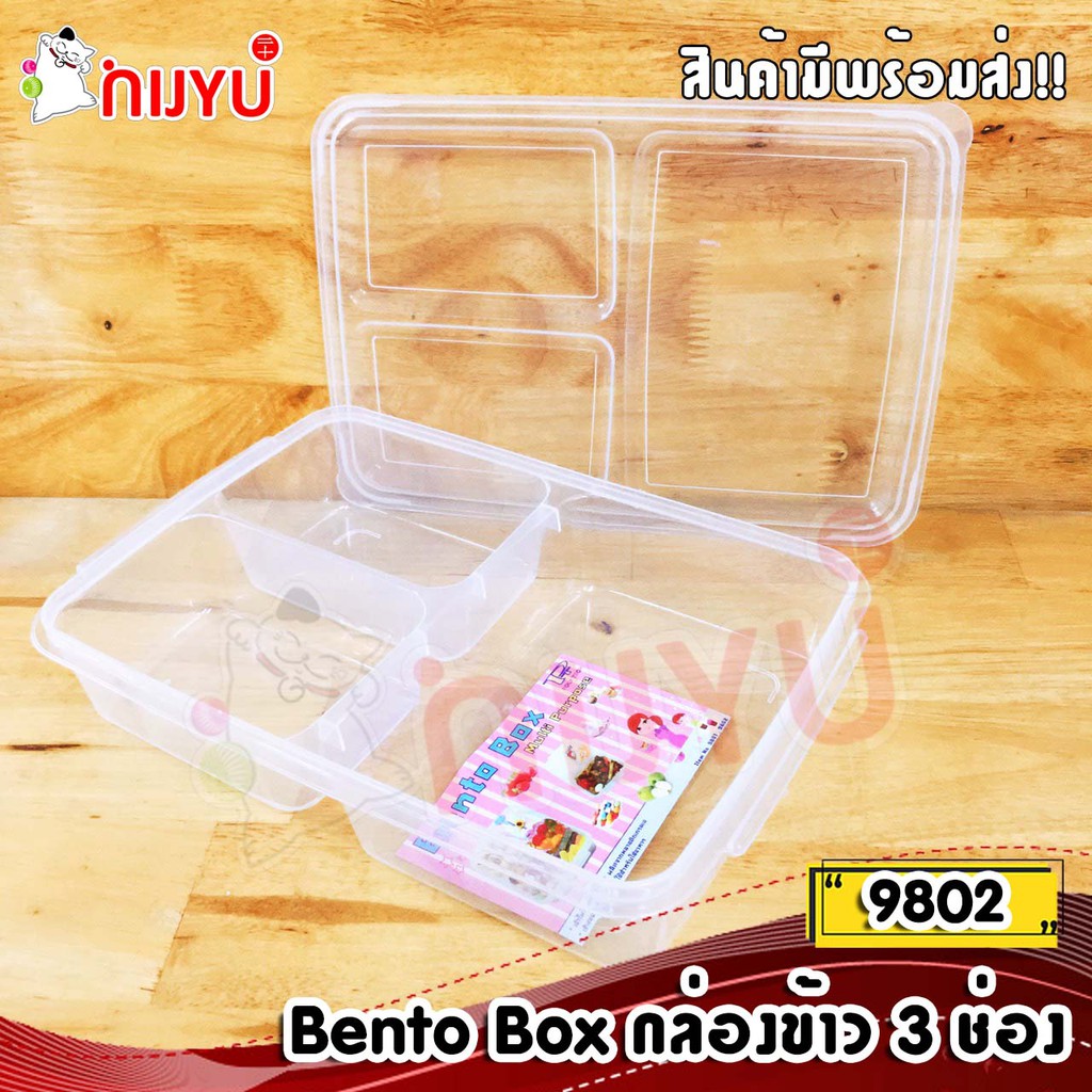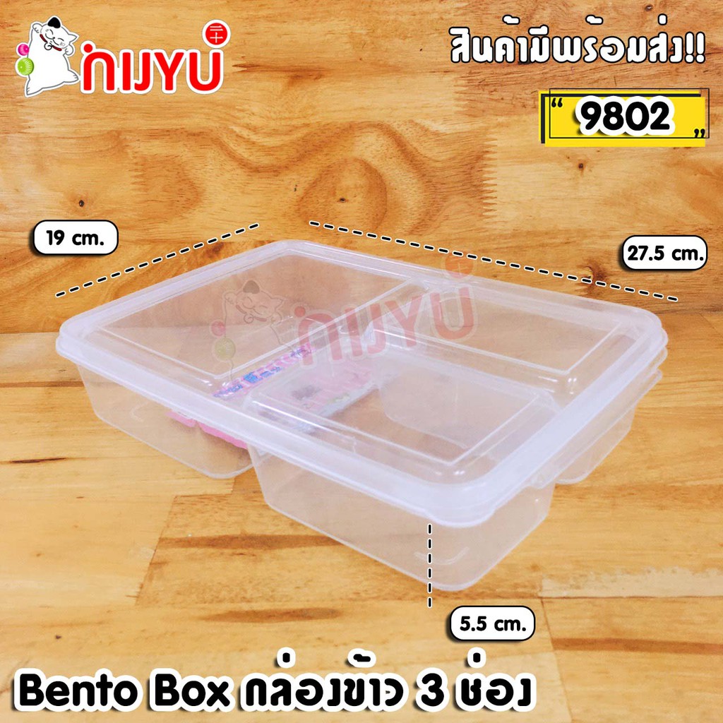 กล่องข้าว กล่องอาหาร ใหญ่จุใจ กล่องถนอมอาหาร 3 ช่องแบ่ง (No.9802) Bento Box
