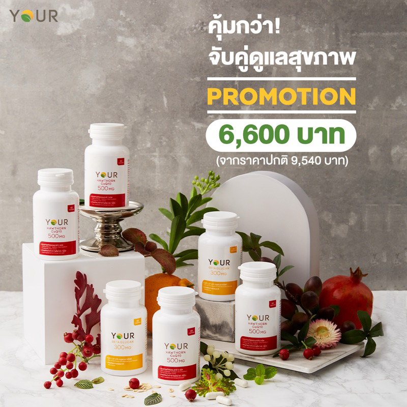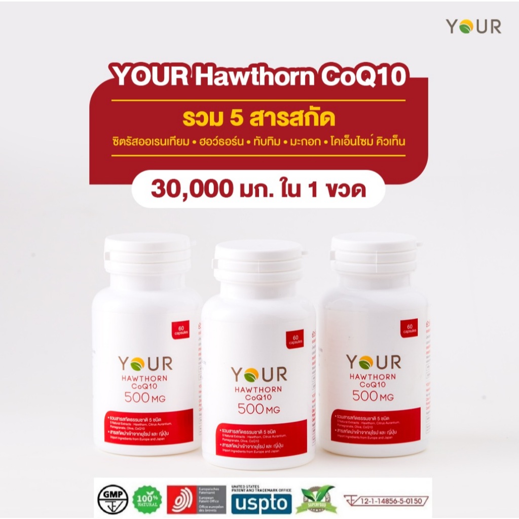 ส่งฟรี Your Hawthorn CoQ10 ฮอร์ธอร์น โคคิวเท็น สกัดจากฮอร์ธอร์น โคคิวเท็น ซีตรัส ทับทิม น้ำมันมะกอก