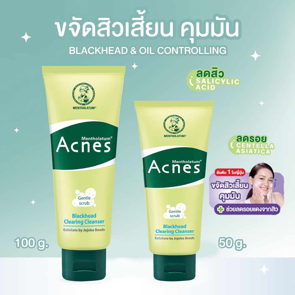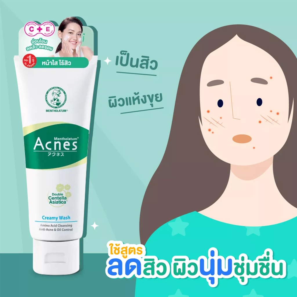 โฟมล้างหน้า เมนโทลาทั่ม แอคเน่ส์ สำหรับผิวเป็นสิว หน้ามัน Mentholatum Acnes 50/100 g.