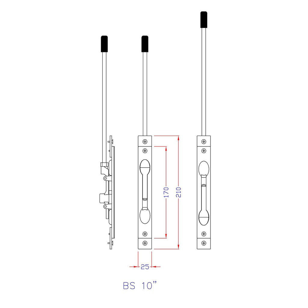 BS-10 กลอนประตูบานสวิง-แกนยาว10นิ้ว- VVP FLUSH BOLTS วีวีพี มีทั้งหมด 4 สี