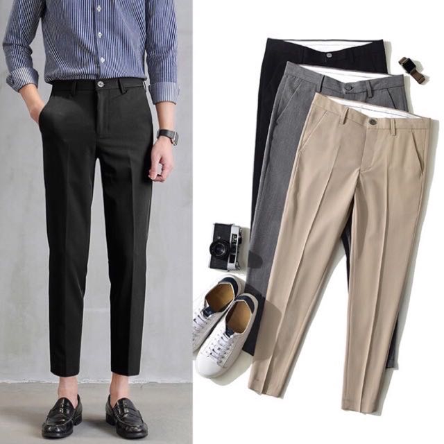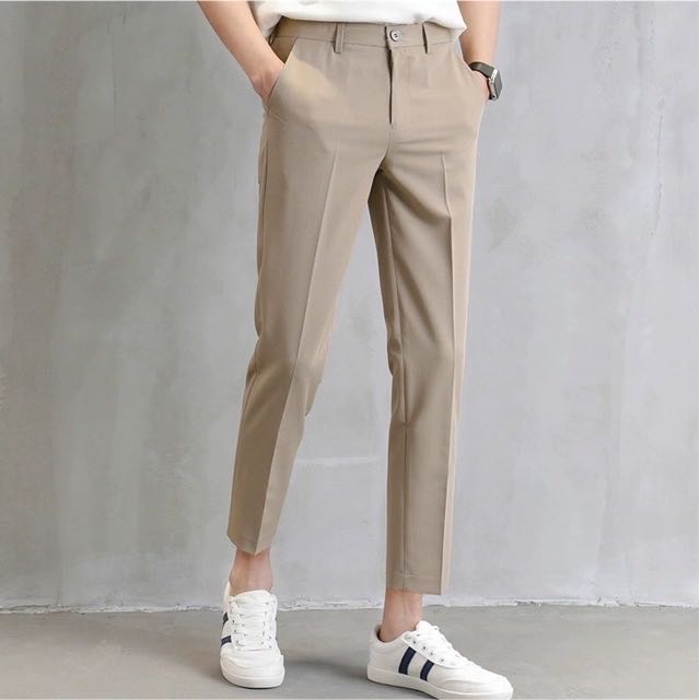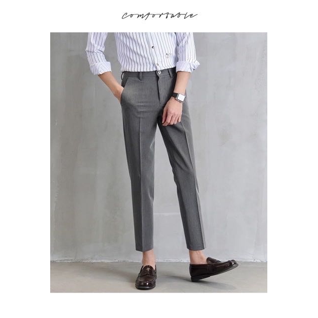 💥ในสต็อก)💥 Fashion Casual Slacks Cropped Pantsกางเกงสแล็คผู้ชายสไตล์เกาหลี 💼✨ เนื้อผ้าระบายอากาศดี ไม่ต้องรีด ใส่ทำงานหร