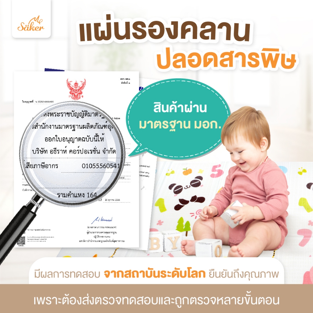 [มีใบเซอร์ปลอดสารพิษ,สารก่อมะเร็งจากSGS]แผ่นรองคลาน Saker แบบพับได้2ด้าน2ลาย คุณภาพสูง มาตรฐานยุโรป