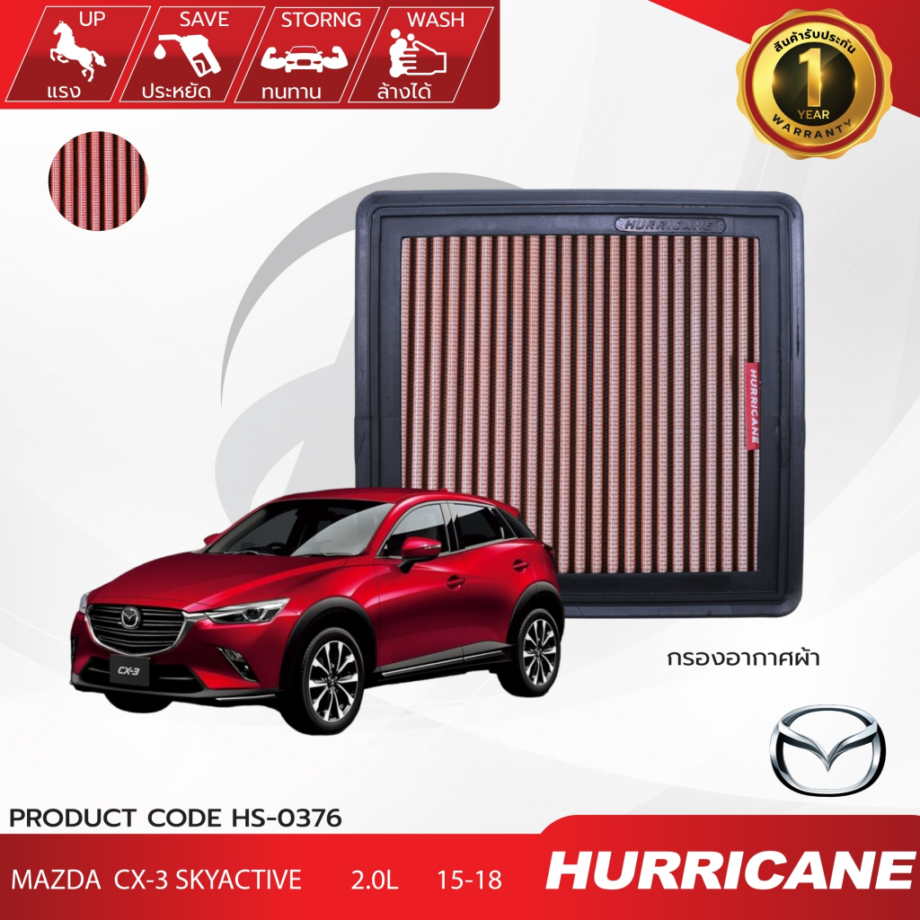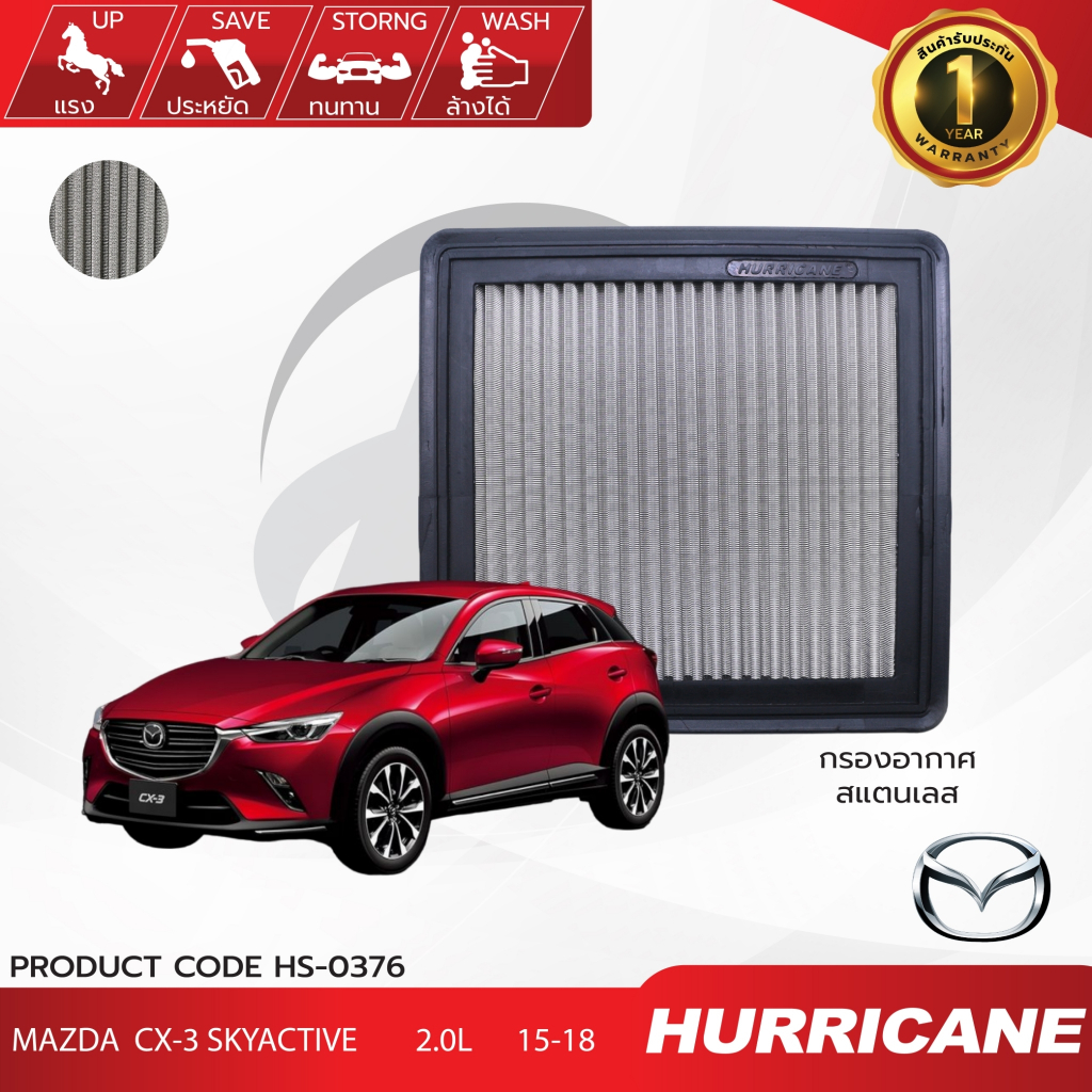 HURRICANE กรองอากาศรถยนต์ผ้าแดง & สแตนเลส Mazda CX-3 Skyactive HS-0376