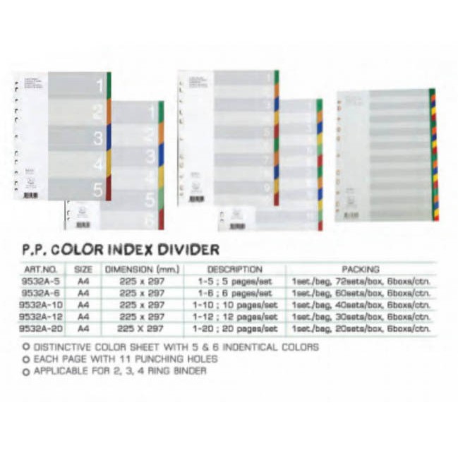 FLAMINGO อินเด็กซ์พลาสติก 9532A (หมวดตัวเลข 5,6,10,12,20 แผ่น/ชุด)