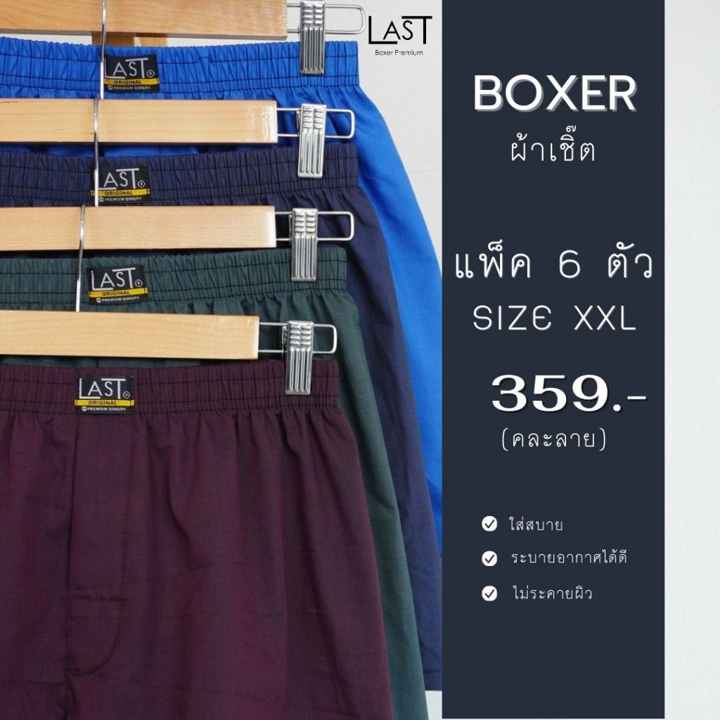 LAST BOXER🔥พร้อมส่ง🔥กางเกงบ๊อกเซอร์ผ้าเชิ๊ต **คละลาย แพ็ค 6 ตัว** ขนาดฟรีไซส์และ XL