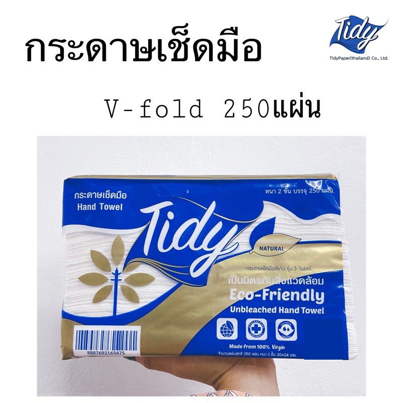 กระดาษเช็ดมือ พรีเมี่ยม Tidy 2ชั้น 250แผ่น*ห่อน้ำเงิน-ทอง
