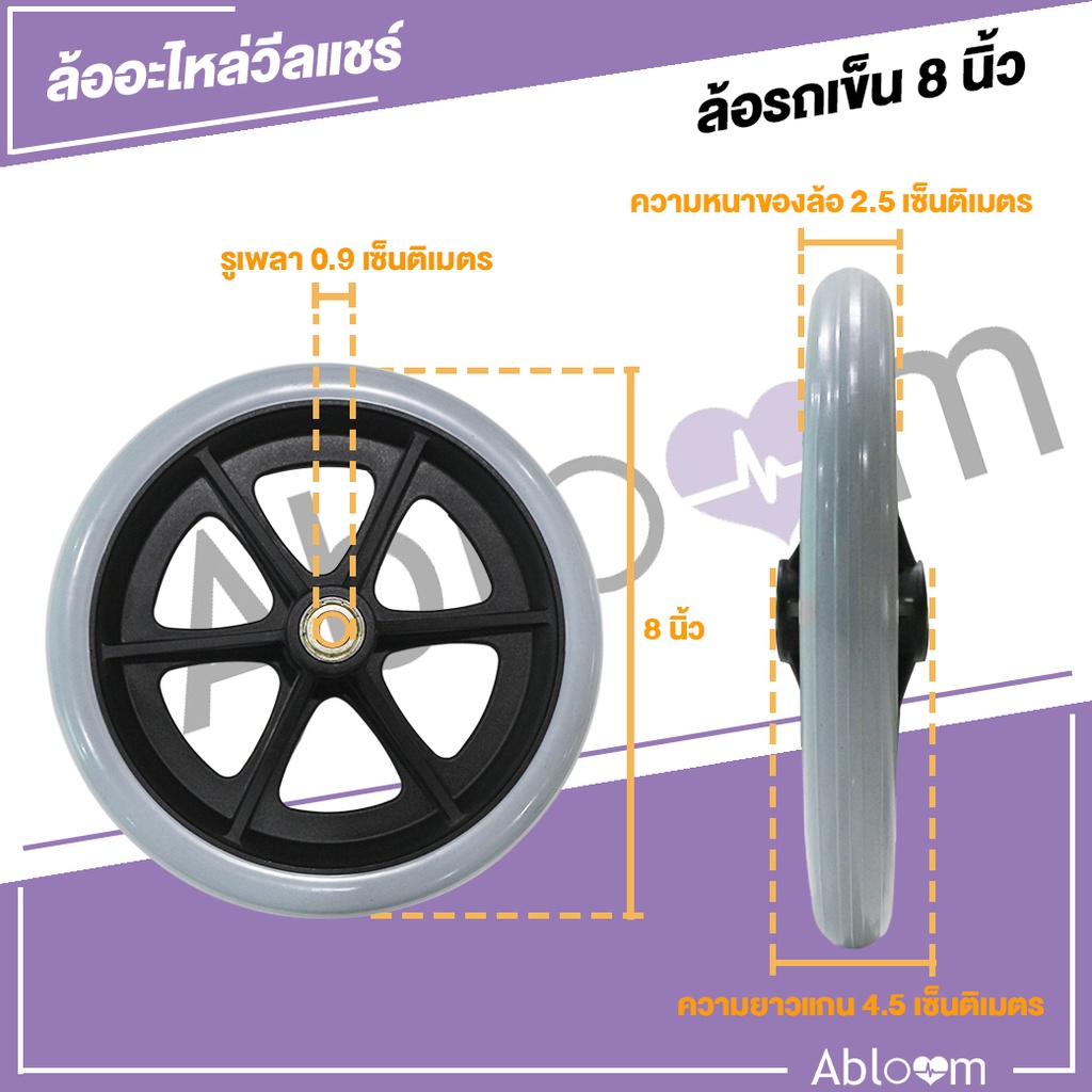 อะไหล่ ล้อรถเข็น ขนาด 6 - 8 นิ้ว Wheelchair Castor 6 - 8 inch (1 ชิ้น)
