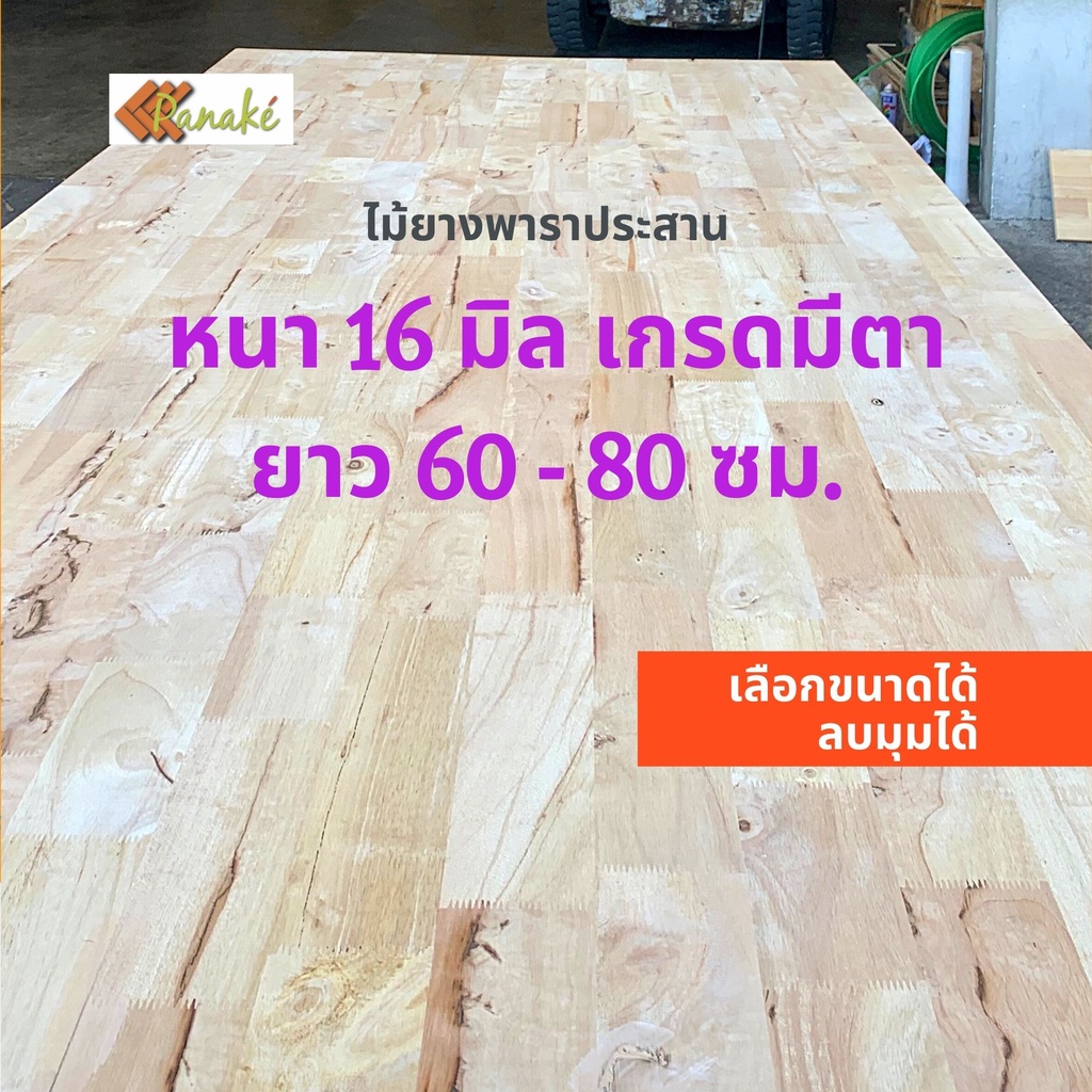 ไม้ยางพาราประสาน 16 มิล มีตา ขนาด 80 ซม. ไม้ยางพาราแผ่น ทำหน้าเก้าอี้ ทำชั้นวางของ