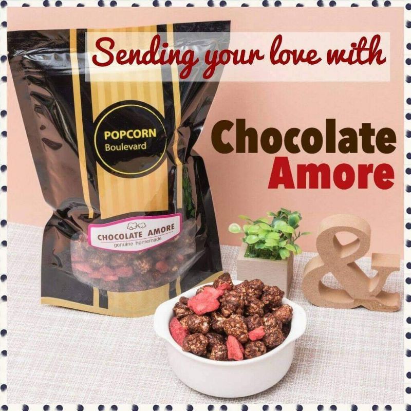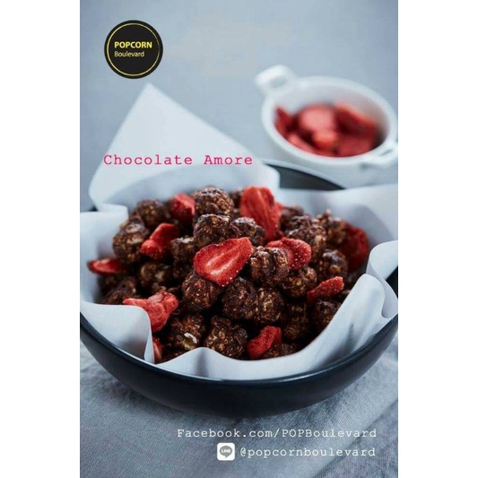 POPCORN Boulevard Chocolate Amore ป๊อปคอร์นรสดาร์กช็อกโกแลต + สตรอเบอร์รี่ฟรีซดราย ขนาด 200 กรัม