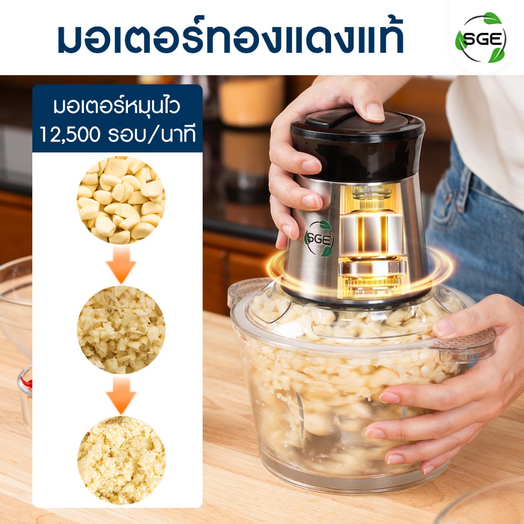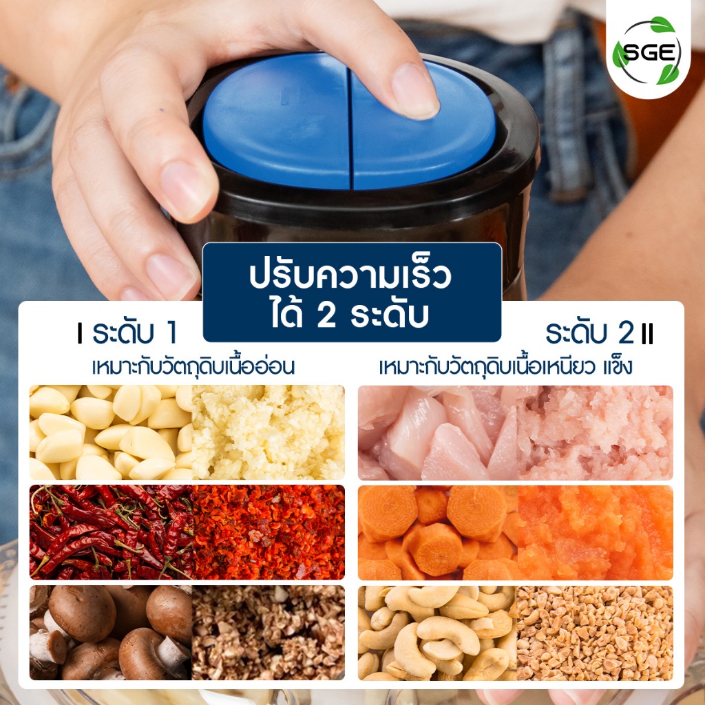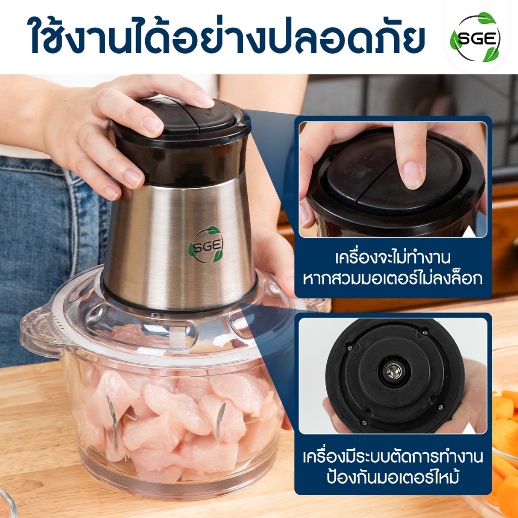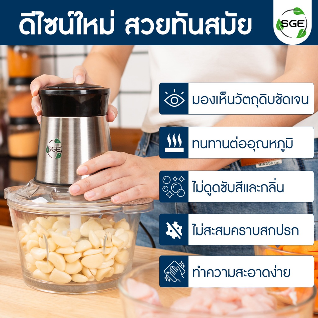 SGE เครื่องปั่น เครื่องบดสับ รุ่น FC02-G2 วัสดุ Food Grade 2 ลิตร ใบมีดสแตนเลส 4ใบ โถแก้วหนาที่สุด!!
