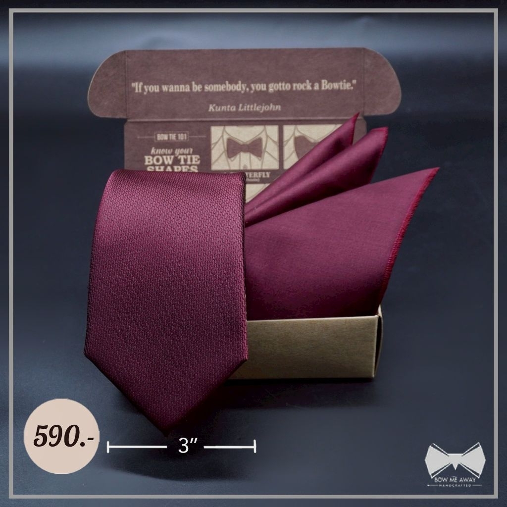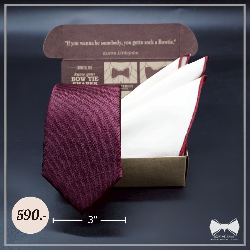 เซ็ทเนคไทModern Gridแดงเบอร์กันดี + ผ้าเช็ดหน้าสูท