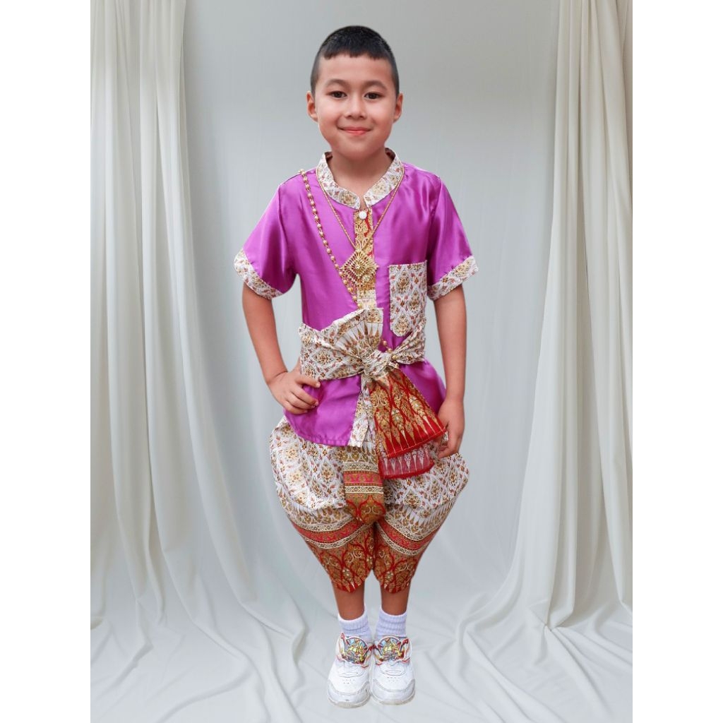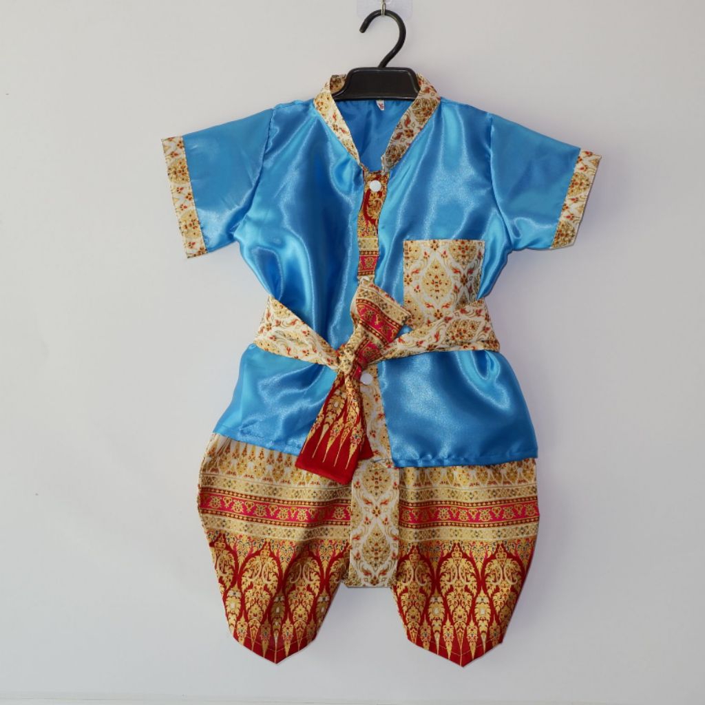 ชุดเด็กคอจีนอโยธยาผ้าต่วนได้ 3 ชิ้น