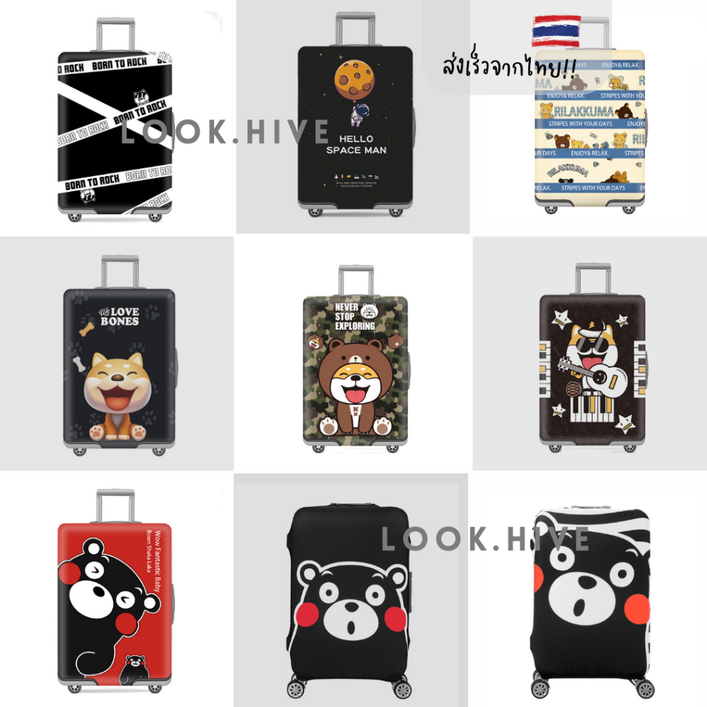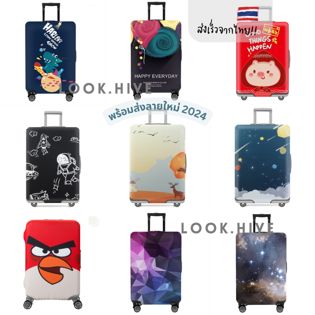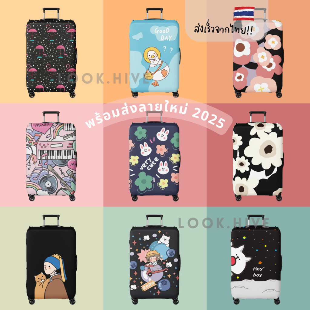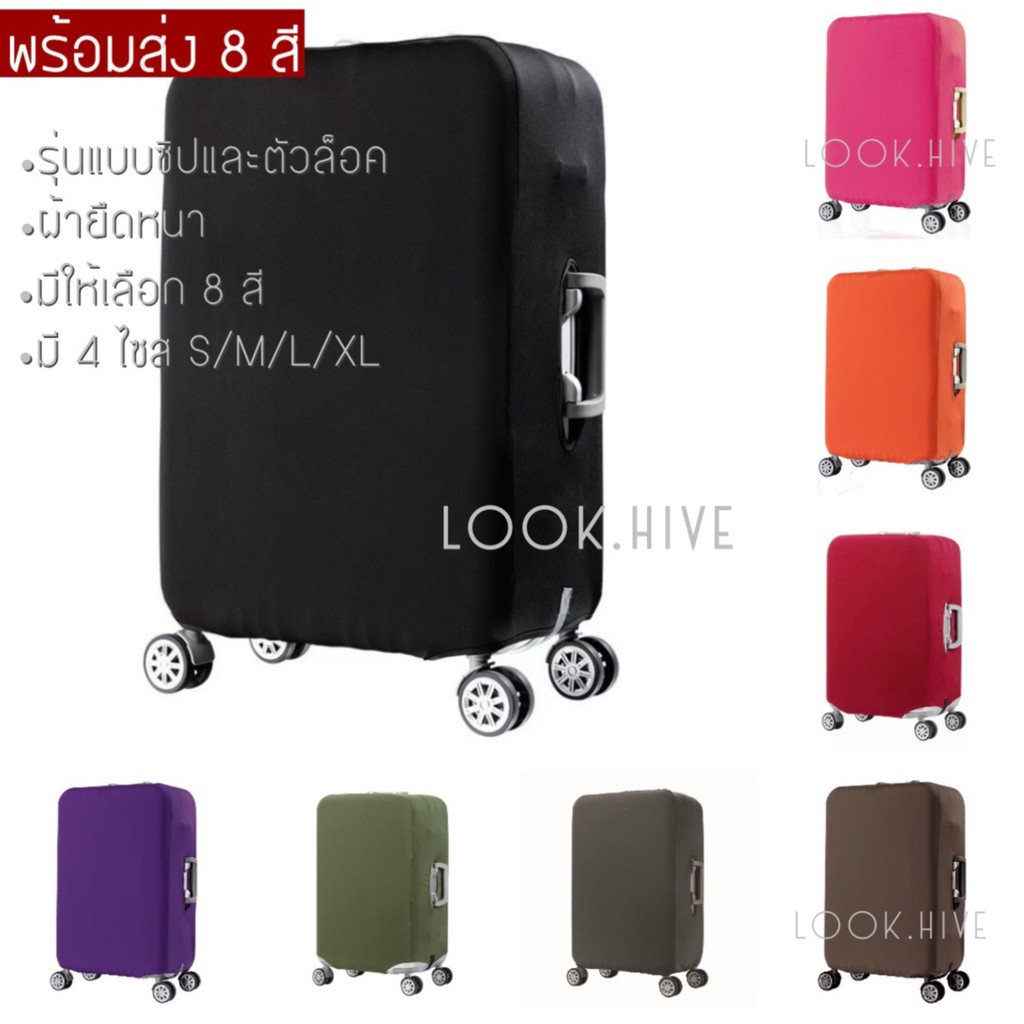 คุณภาพดีกว่า!! 50 ลาย ผ้าคลุมกระเป๋าเดินทาง ผ้ายืดหนาแบบซิป Luggage Cover 8 สี B047