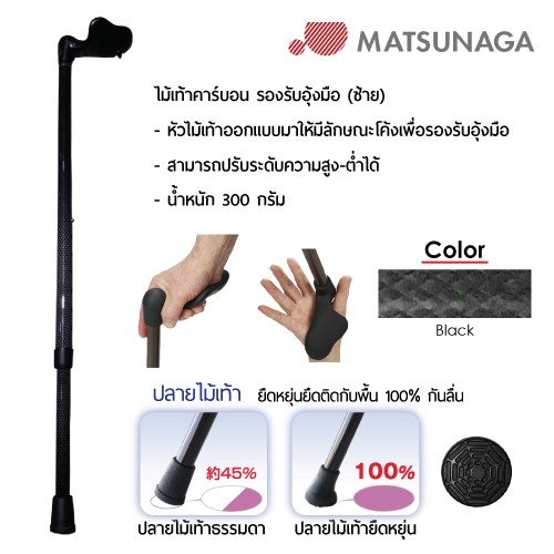 Matsunaga ไม้เท้าคาร์บอน รองรับอุ้งมือ Carbon Cane