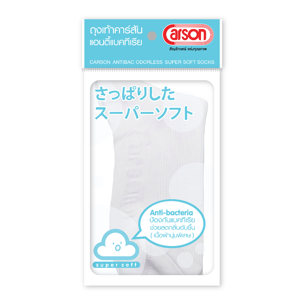 ถุงเท้านักเรียน Carson รุ่นแอนตี้แบคทีเรีย99.99% สีขาว แพ็ค 1 คู่ เนื้อผ้า Nylon [ส้นเท้าปลายเท้าหนา 2 เท่า]