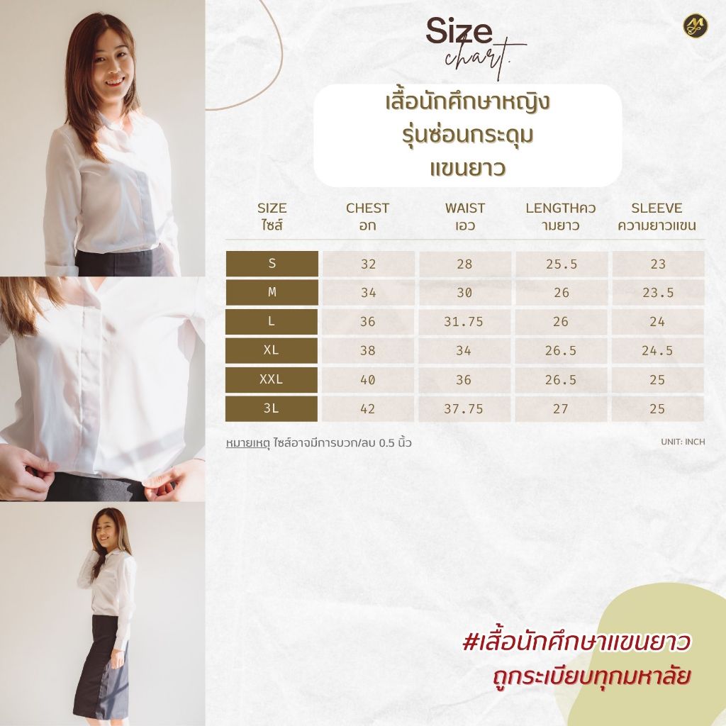 มุมทอง เสื้อนักศึกษาหญิง แขนยาว(ซ่อนกระดุม)