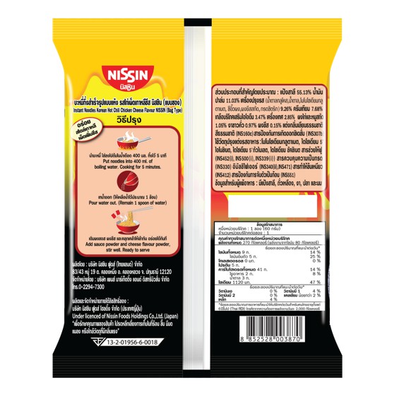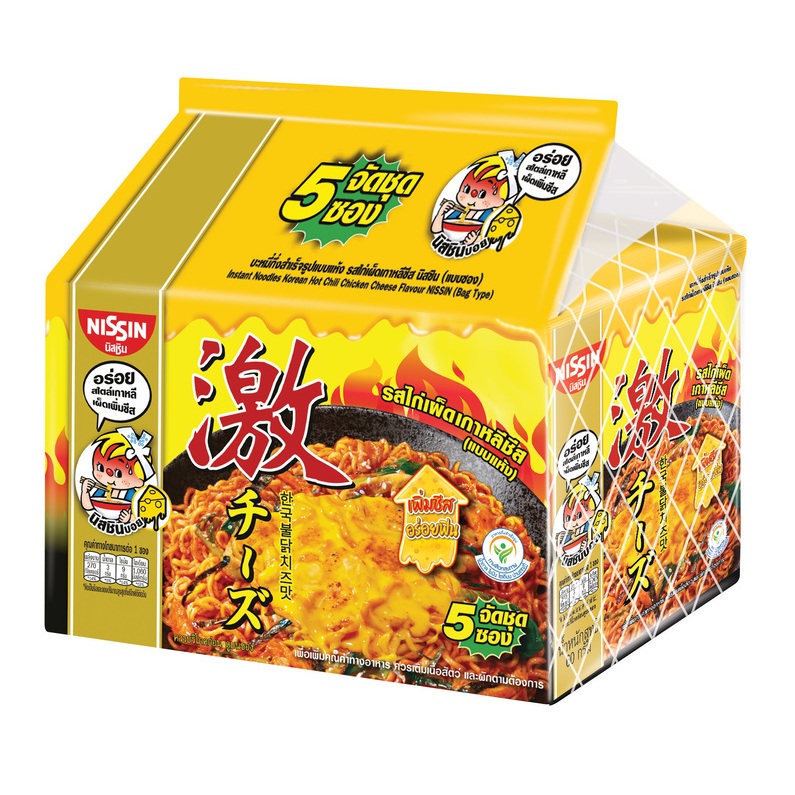 นิสชิน บะหมี่กึ่งสำเร็จรูป รสไก่เผ็ดเกาหลีชีส(แบบซอง) แพ็ค 5(2 แพ็ค) -NISSIN Korean Hot Chili Chicken Cheese Flavor