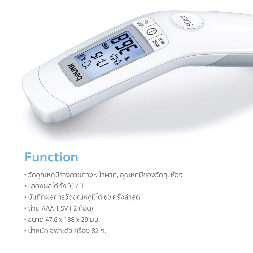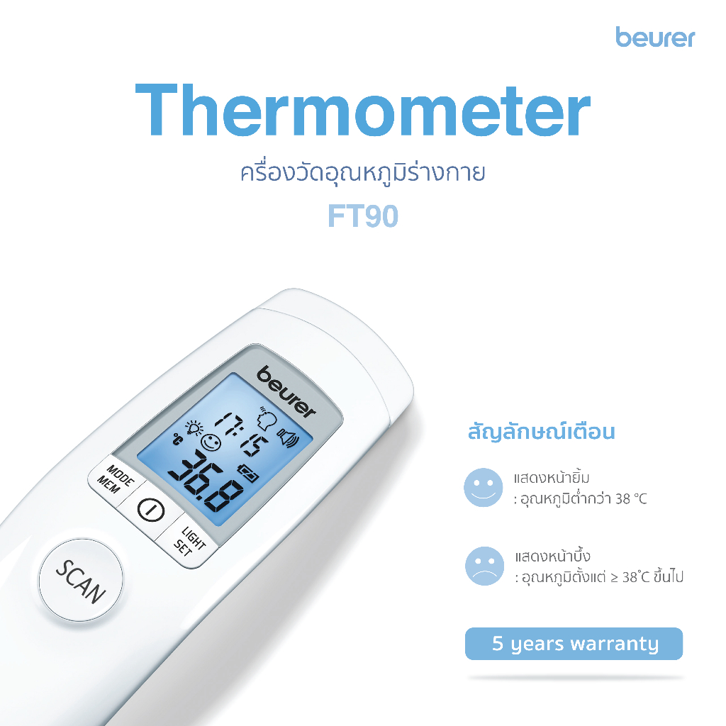Beurer เครื่องวัดอุณหภูมิร่างกาย แบบไม่สัมผัส บอยเรอร์ รุ่น FT90 | Non-Contact Thermometer FT 90