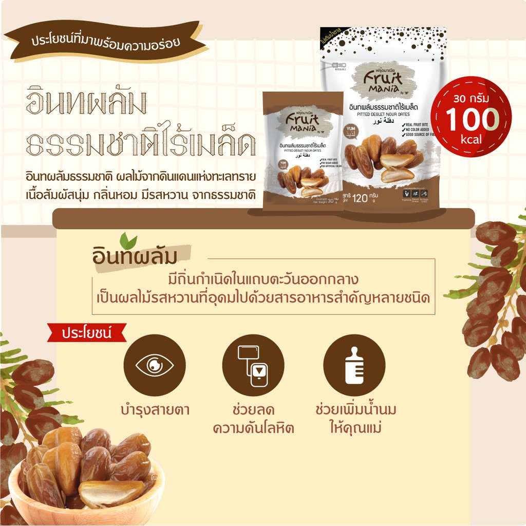 [แพ็คสุดคุ้ม 6 ซอง] FruitMania ฟรุตมาเนีย อินทผลัมธรรมชาติไร้เมล็ด 120 กรัม Pitted Deglet Nour Dates
