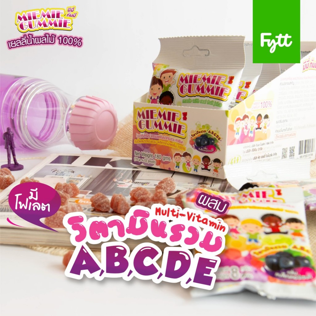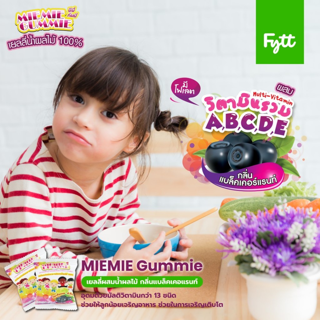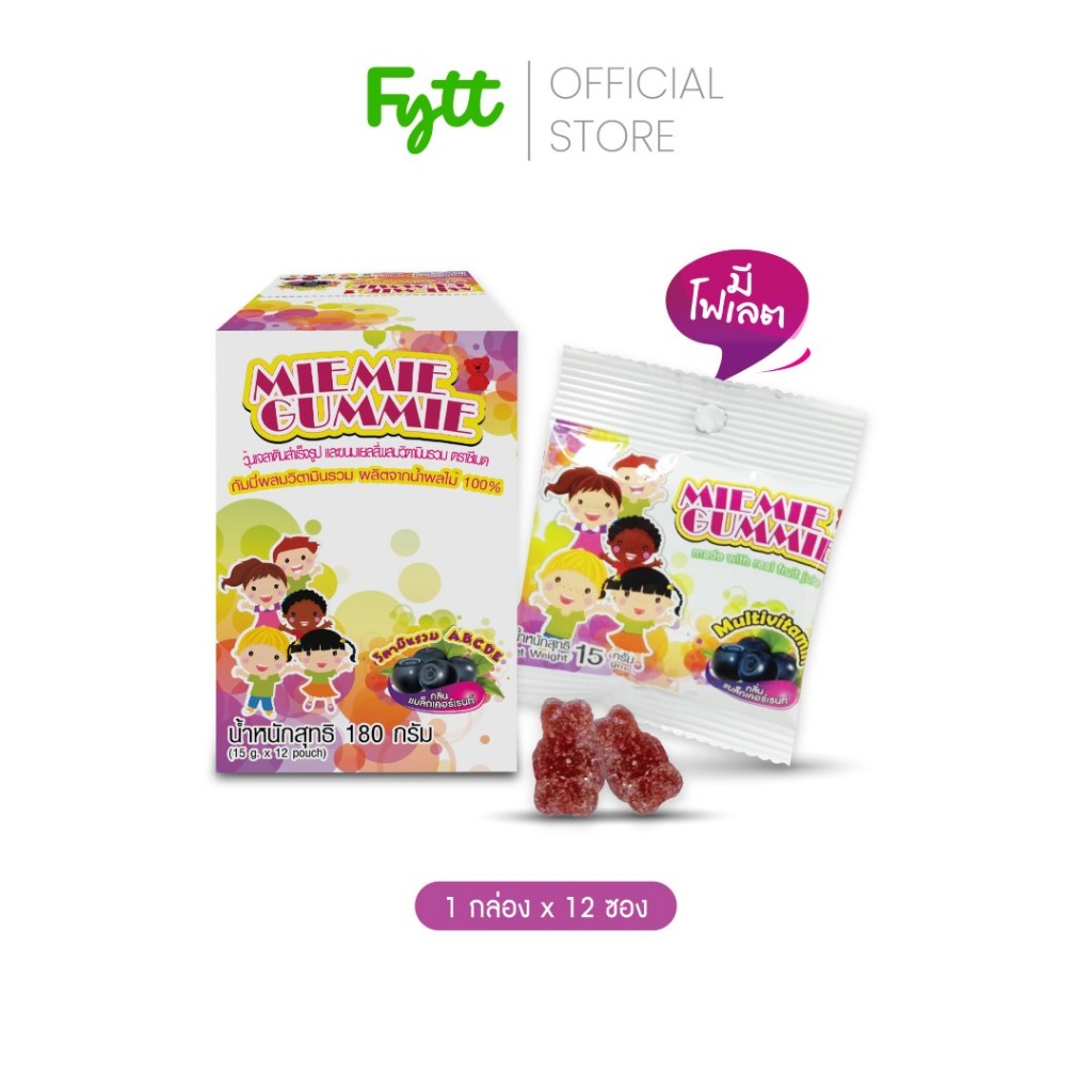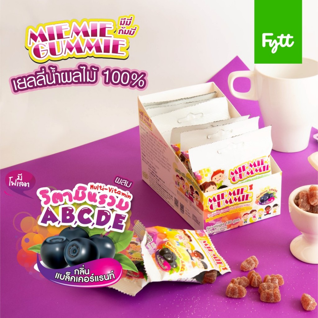 Miemie Gummie วิตามินรวมแบบกัมมี่ กลิ่นแบล็คเคอแร้นท์ | เเคี้ยวอร่อย เด็กทานได้ | 1 กล่อง 12 ซอง