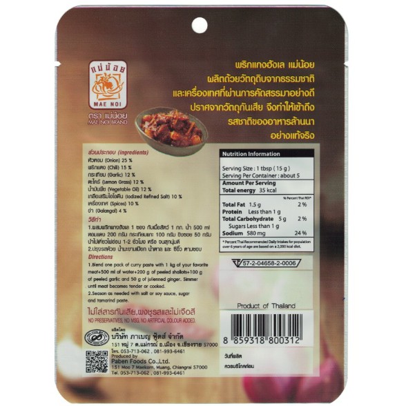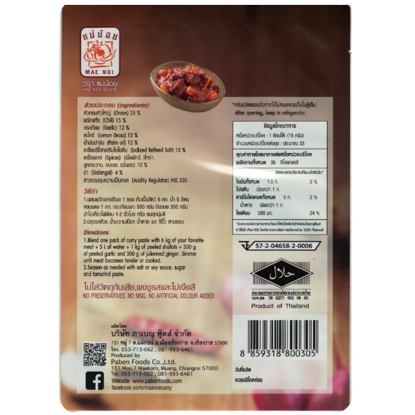 พริกแกงฮังเลสำเร็จรูป (ชนิดผัด) ตราแม่น้อย ขนาด 80 กรัม / 500 กรัม