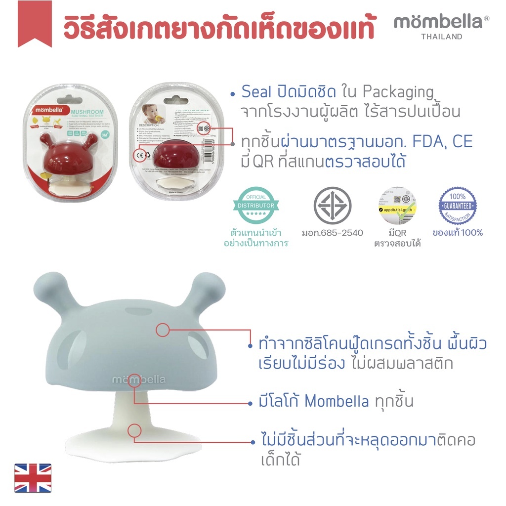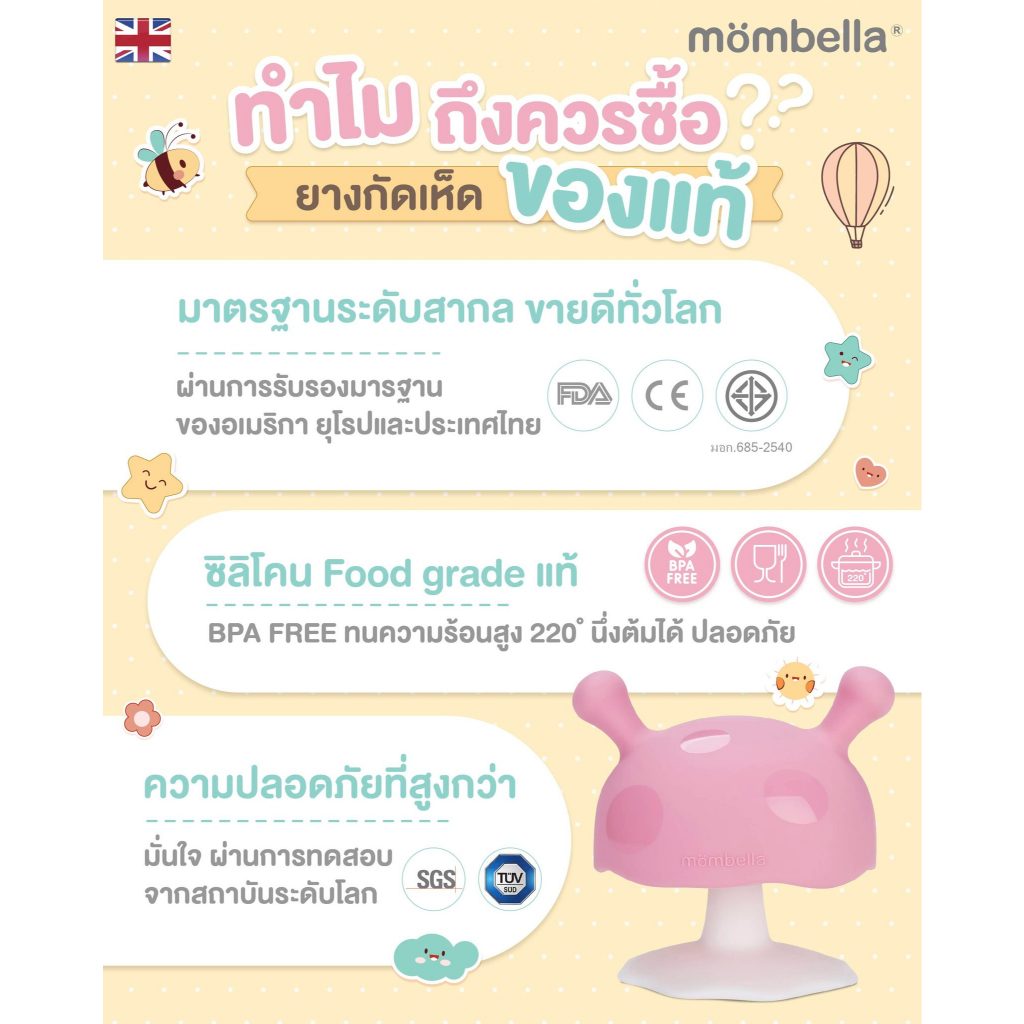 Mombella Teether ยางกัดมัมเบลล่า ซิลิโคนเหมือนเต้านมแม่ ยางกัดเห็ด ของแท้ มีมอก. ปลอดภัย