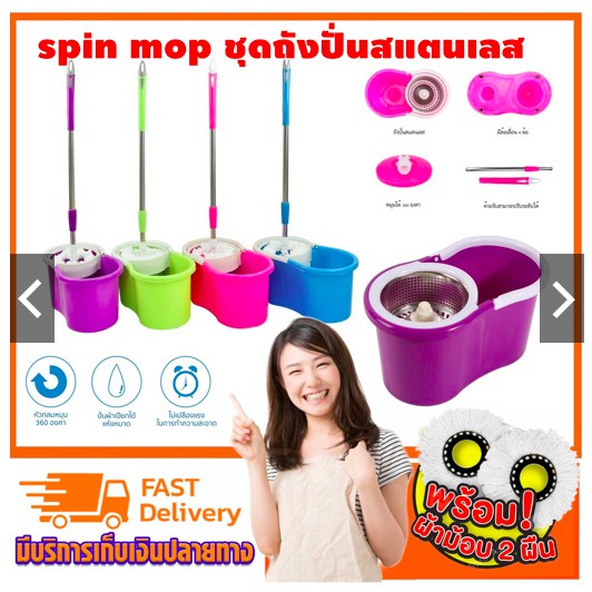 🔥โปรไฟไหม้🔥spin mop ชุดถังปั่นสแตนเลส ไม้ถูพื่น ถังปั่นสแตนเลส ไม้ม็อบถังปั่นไม้ม๊อบหมุนได้ 360 องศา