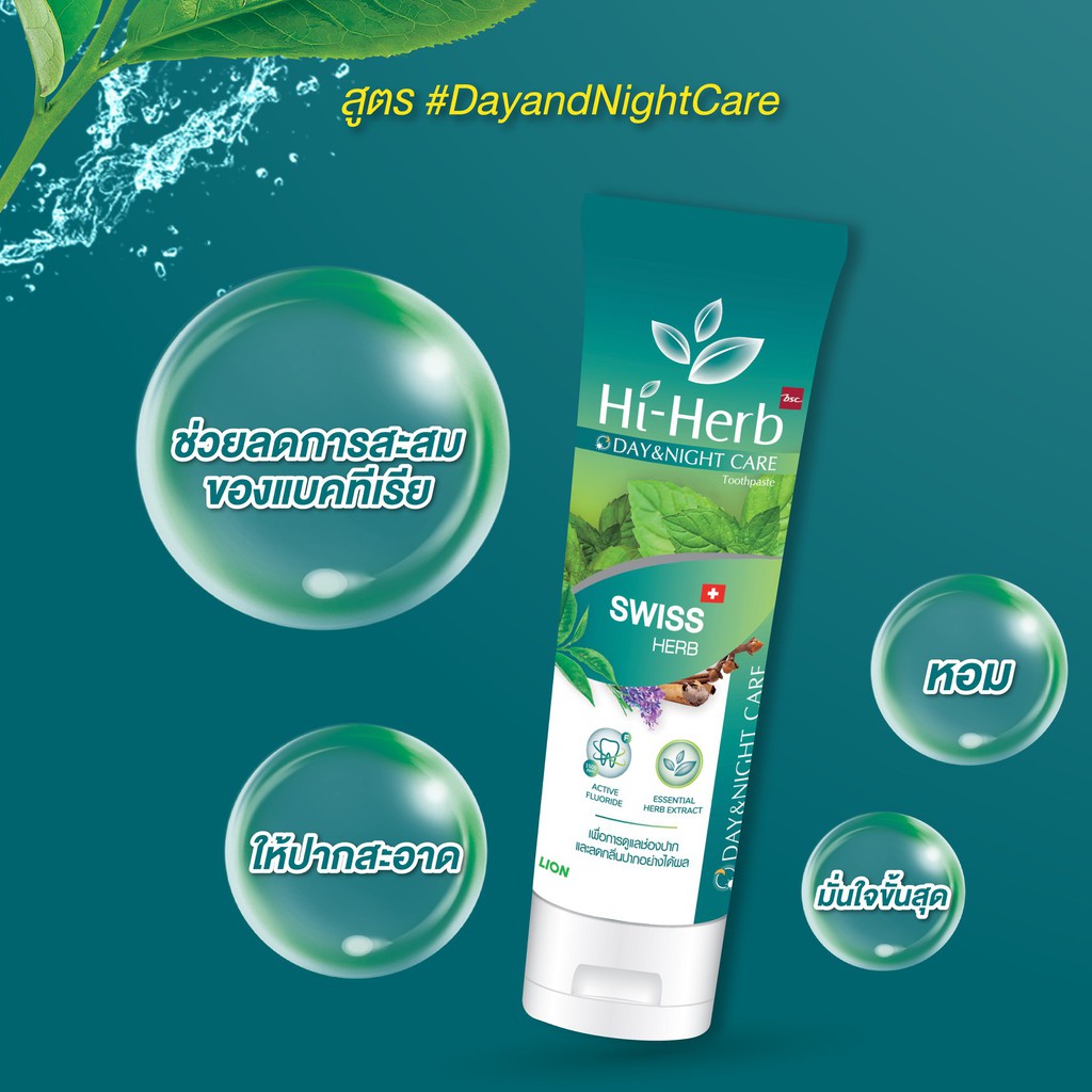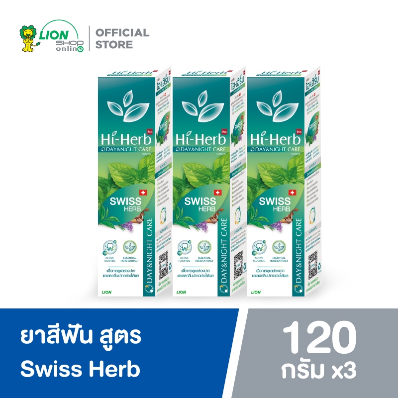 Hi-Herb ยาสีฟัน ไฮเฮิร์บ Day & Night Care สูตร Swiss Herb 120 กรัม 3 หลอด