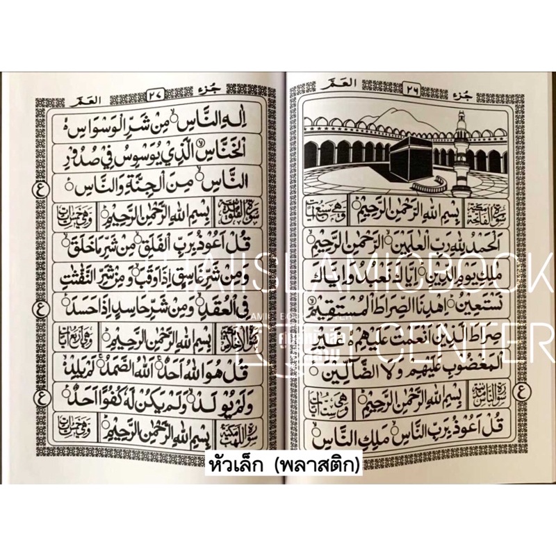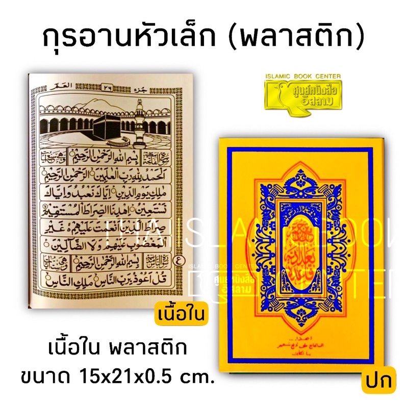 อัล-กุรอาน หัวเล็ก (พลาสติก) ขนาด 15x21x0.5 cm, สีสด, อักษรคมชัด, หน้าไม่เอียง, ไม่มีรอยหมึกเปื้อนจากการพิมพ์ **พร้อมส่ง
