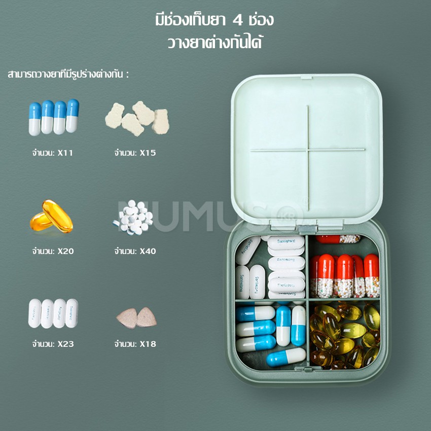 singaye กล่องเก็บยาพกพา กล่องเก็บยาอเนกประสงค์ 4 ช่อง สำหรับเดินทาง กล่องยากันน้ำ ตลับเก็บยา กล่องเก็บยาขนาดเล็ก