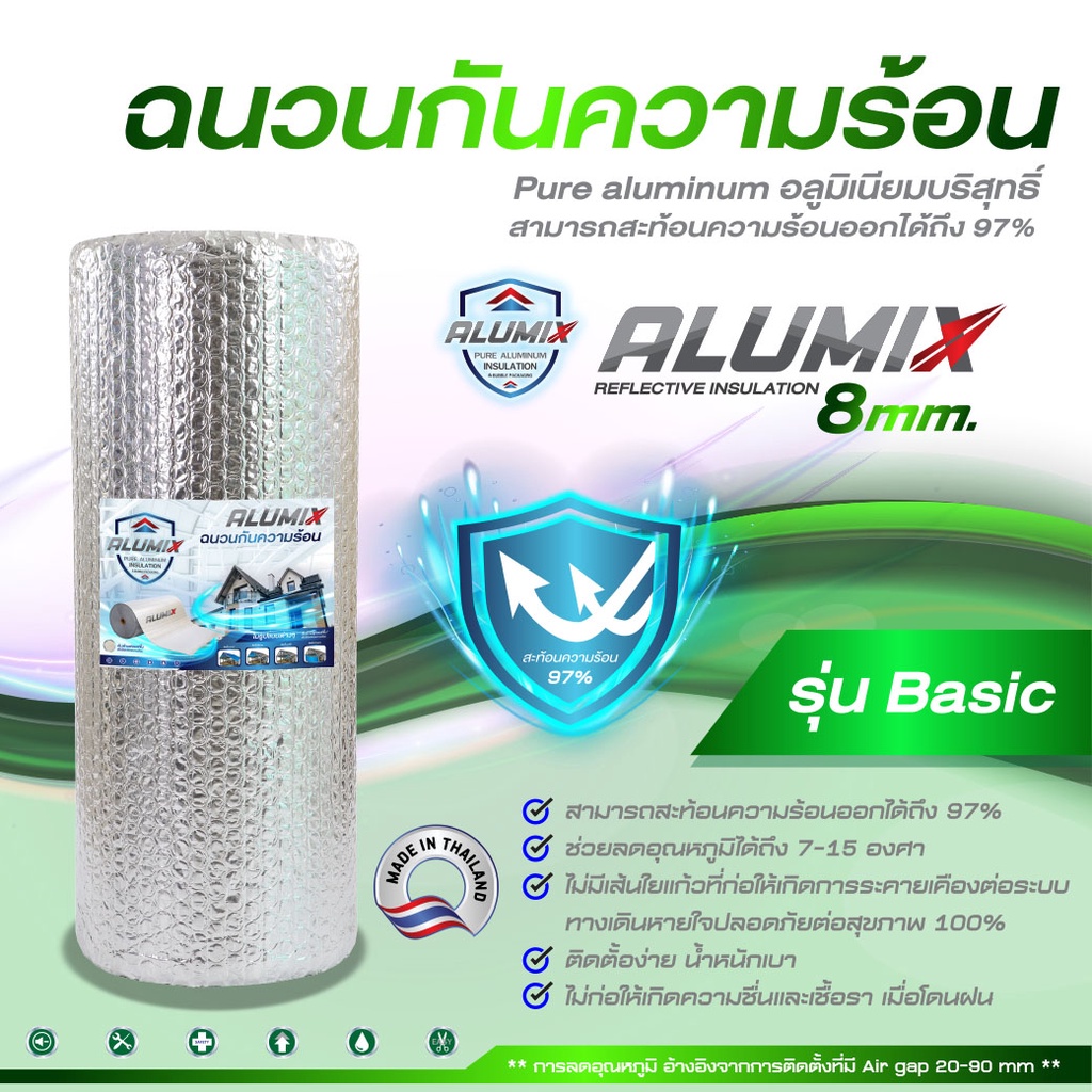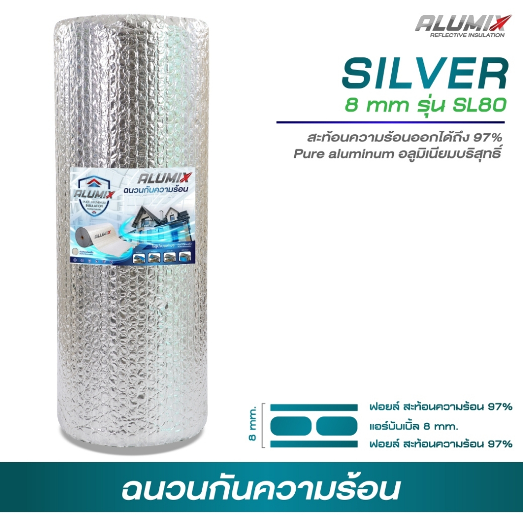 Alumix SILVER 8mm BASIC Insulation SL80 ฉนวนกันความร้อน สะท้อนความร้อน 97% Aluminum Foil